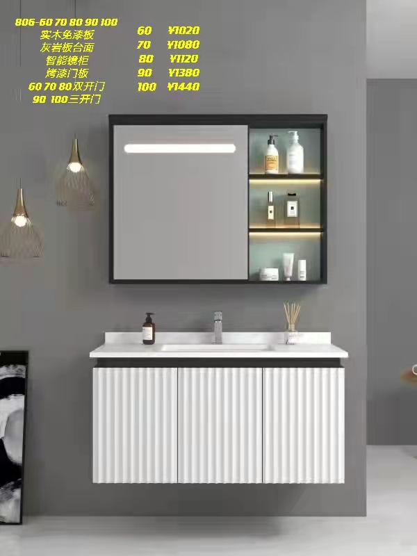 现代简约灰岩板台面智能镜柜洗漱台(806型)【LY】