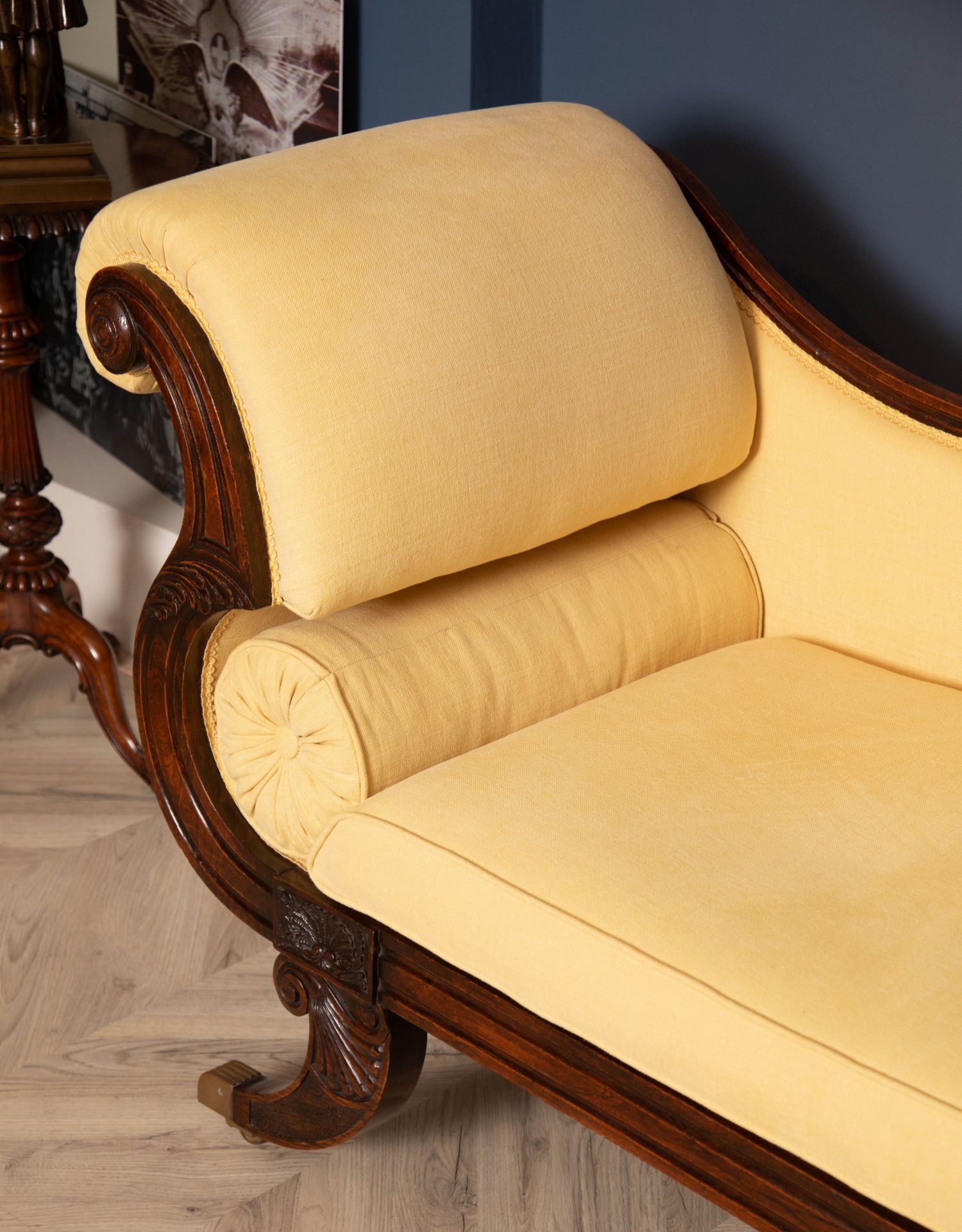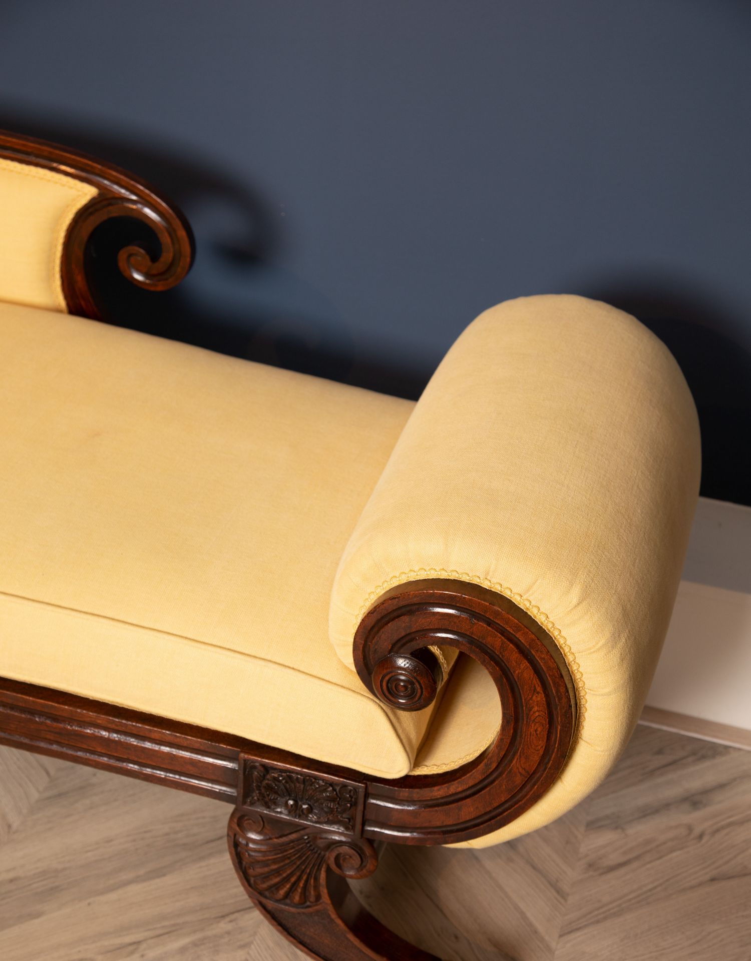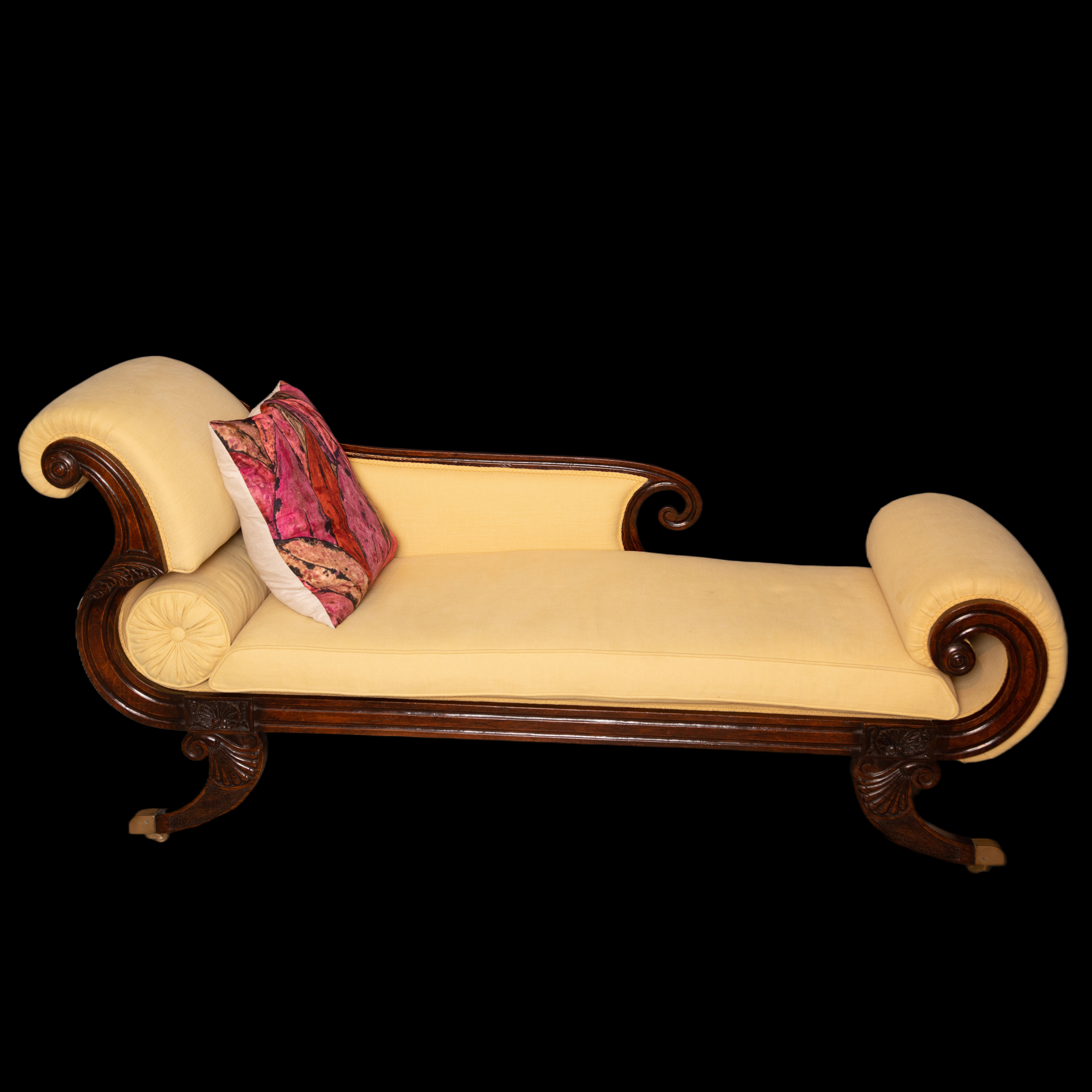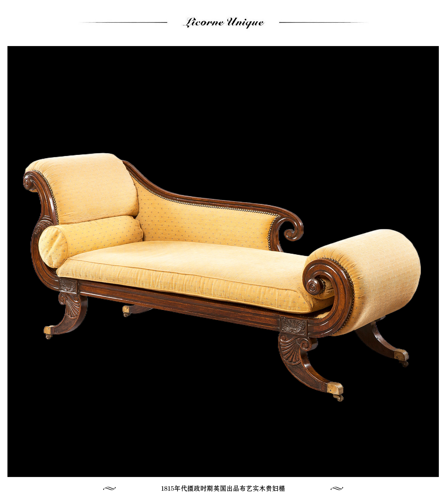 独角鹿西洋古董家具1815年代摄政时期英国布艺实木贵妇榻沙发躺椅