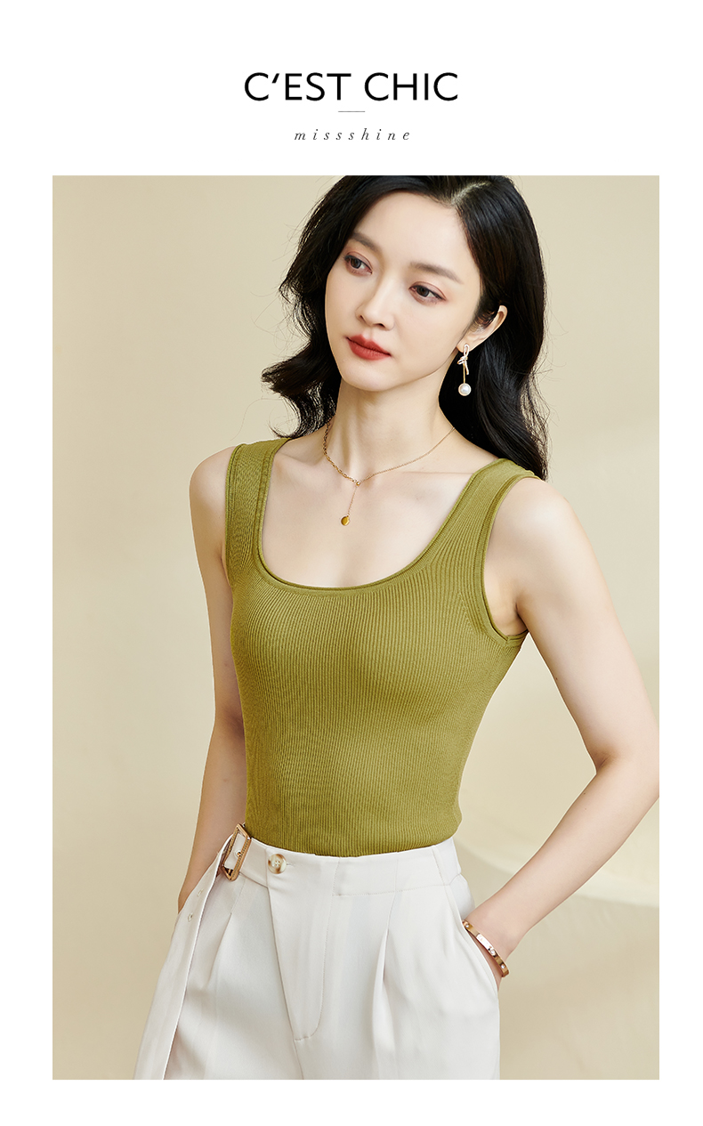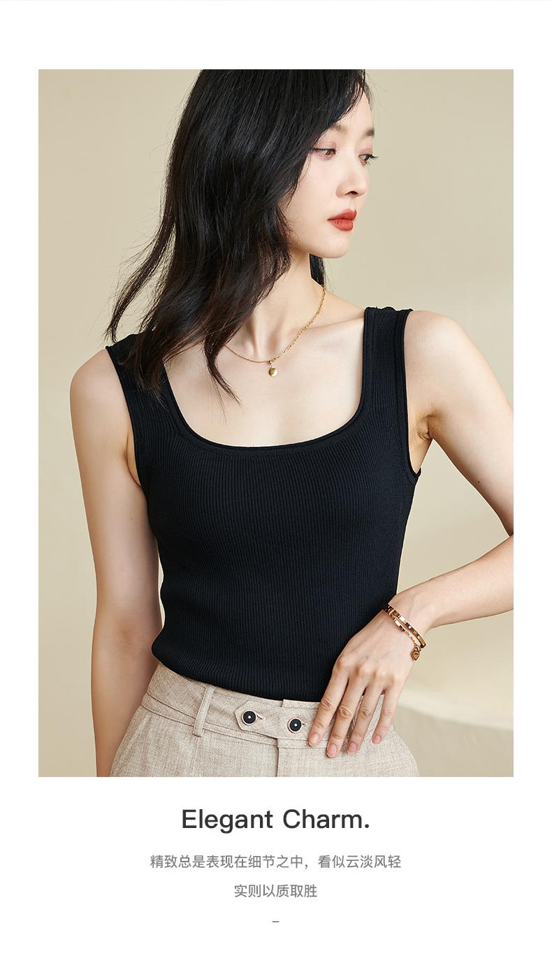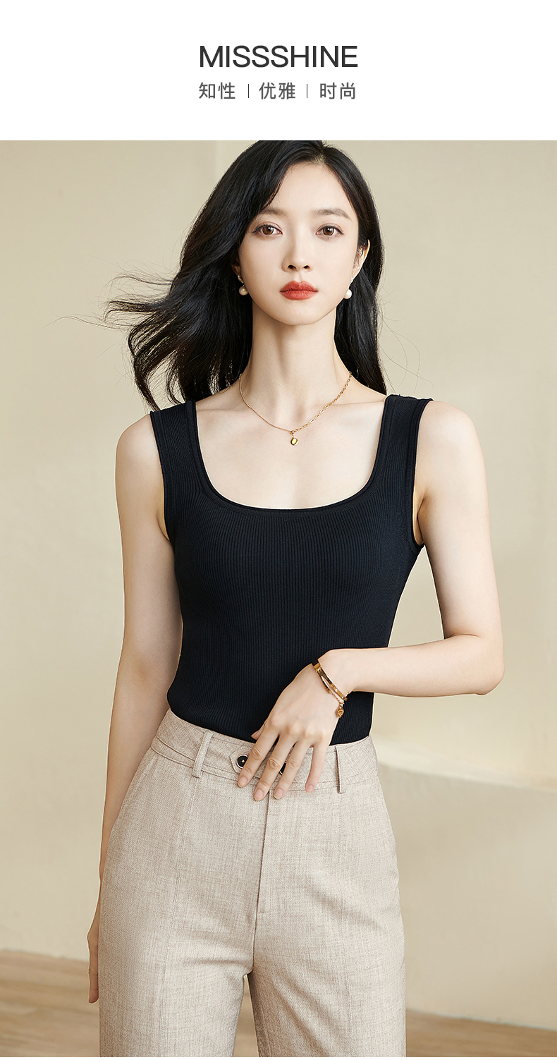 剩XL/S/M/L 米思阳2025秋夏新款简约大方纯色针织方领背心修身百搭内搭女0028