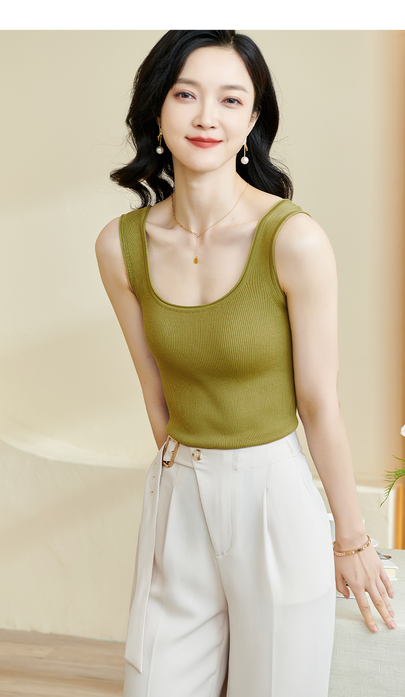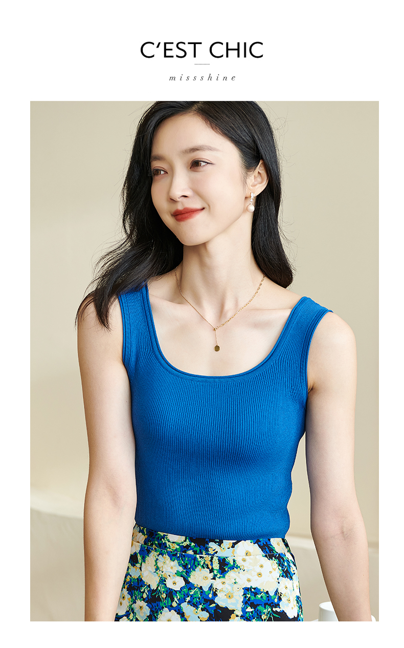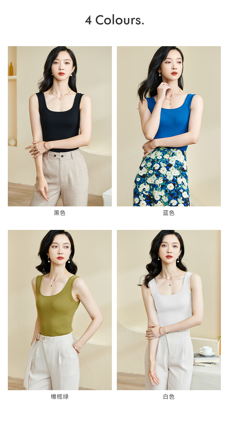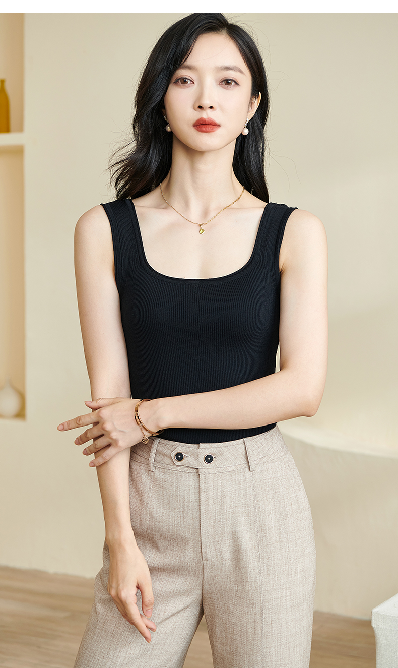 剩XL/S/M/L 米思阳2025秋夏新款简约大方纯色针织方领背心修身百搭内搭女0028