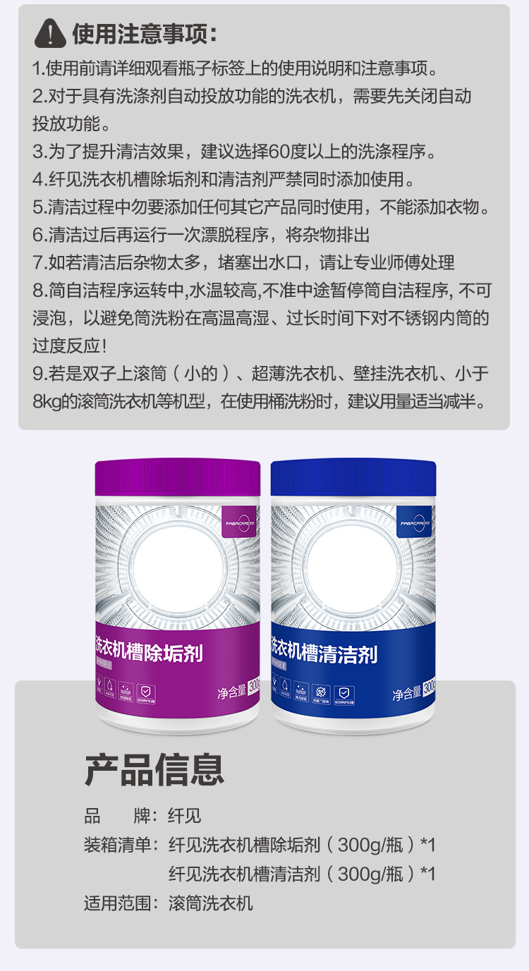 纤见洗衣机槽清洁筒洗粉2罐装(除垢剂1+清洁剂1)