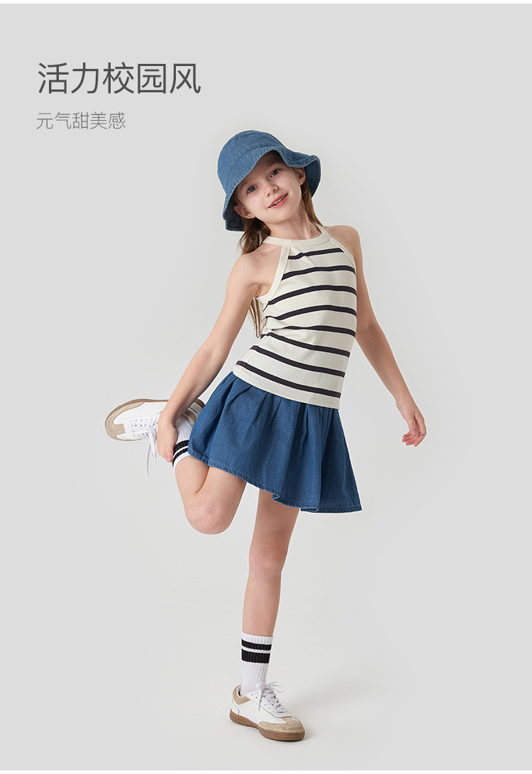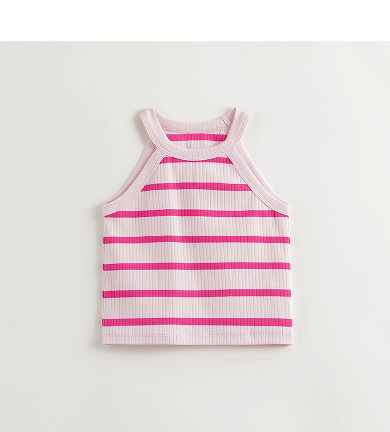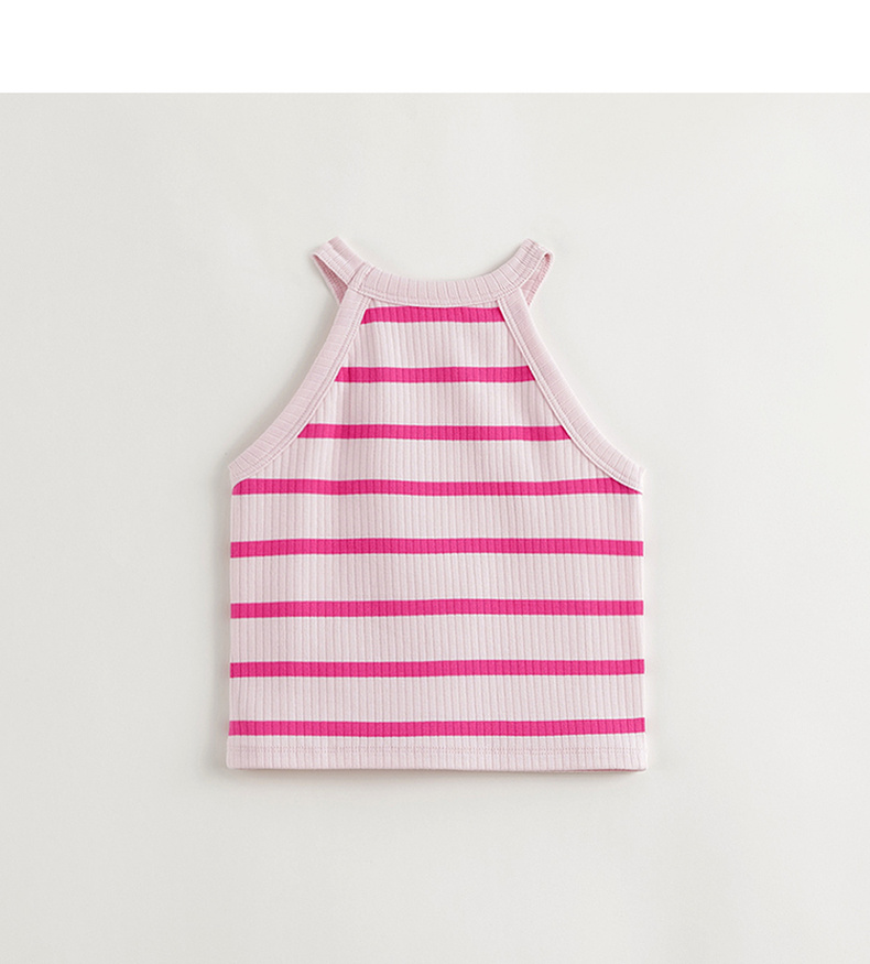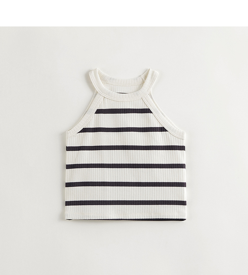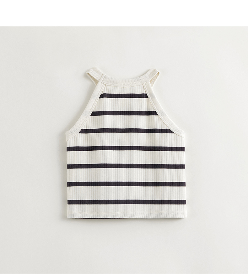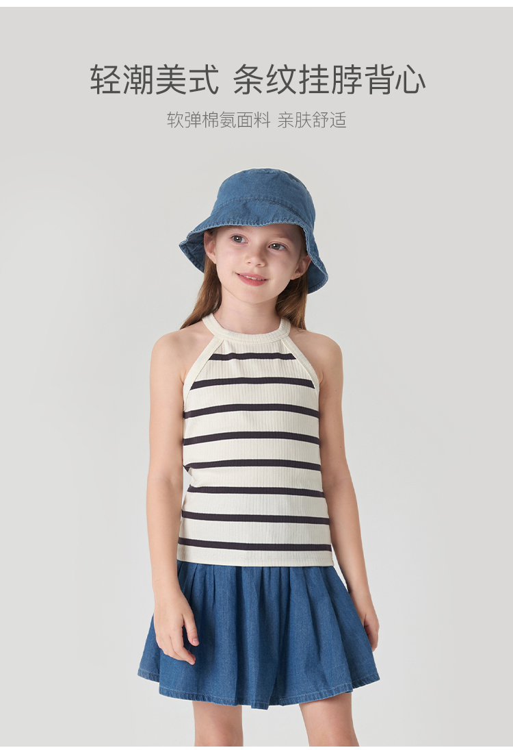 马克珍妮2024年夏装新款 女童时尚条纹挂脖背心 240608