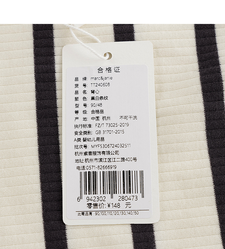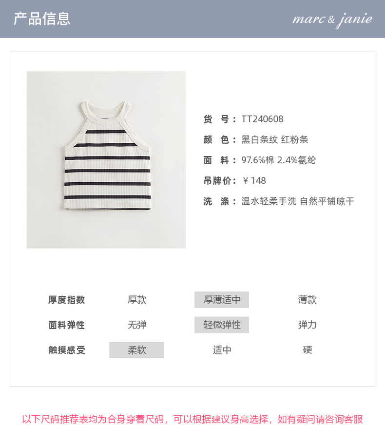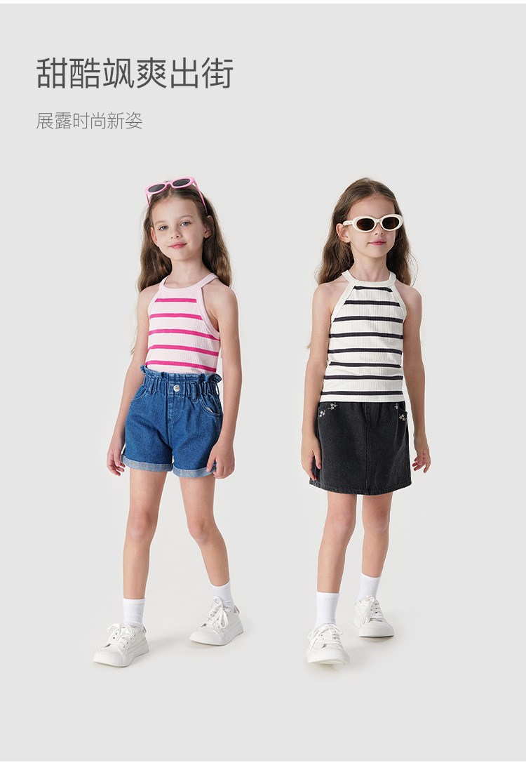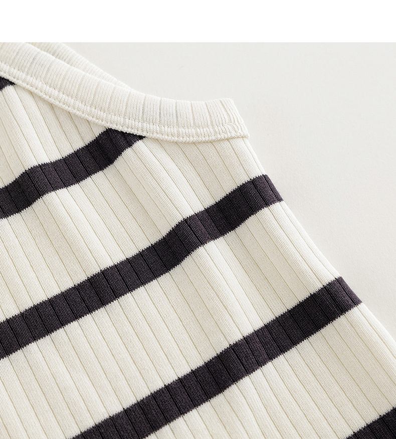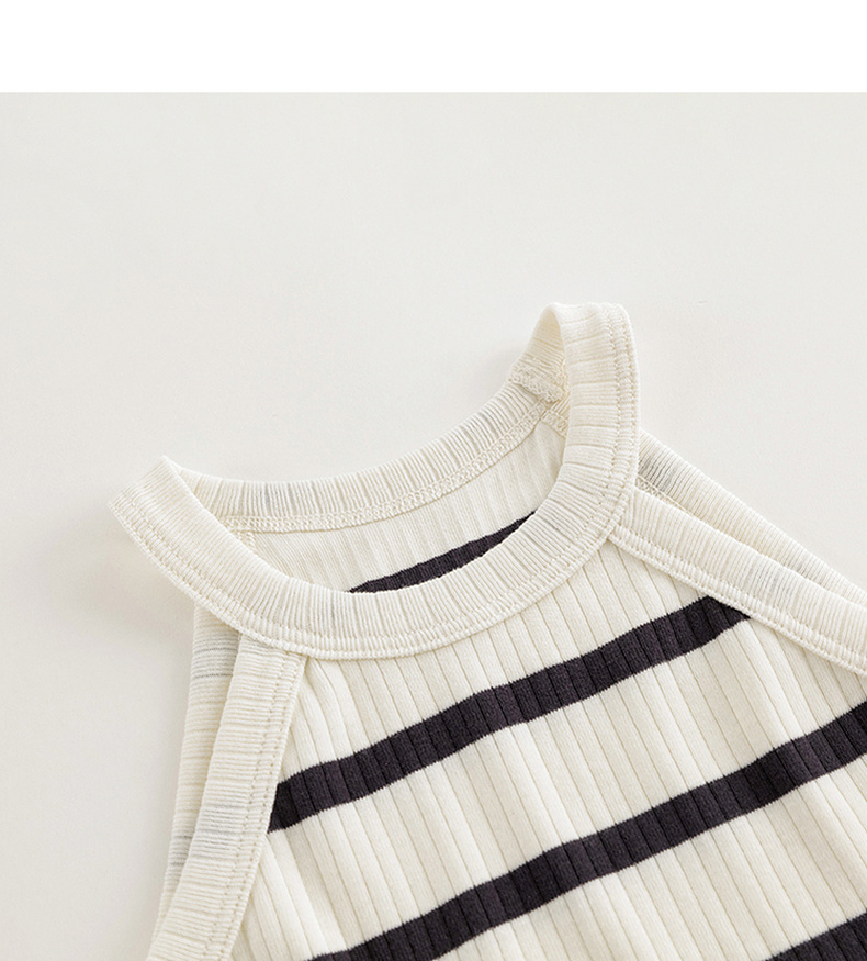 马克珍妮2024年夏装新款 女童时尚条纹挂脖背心 240608
