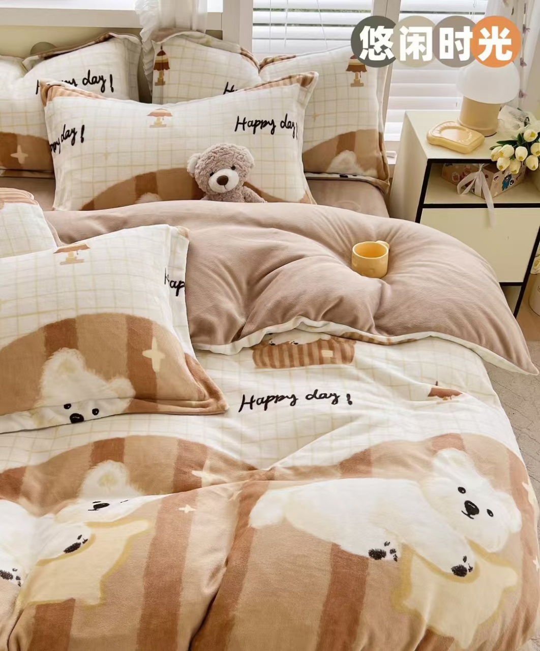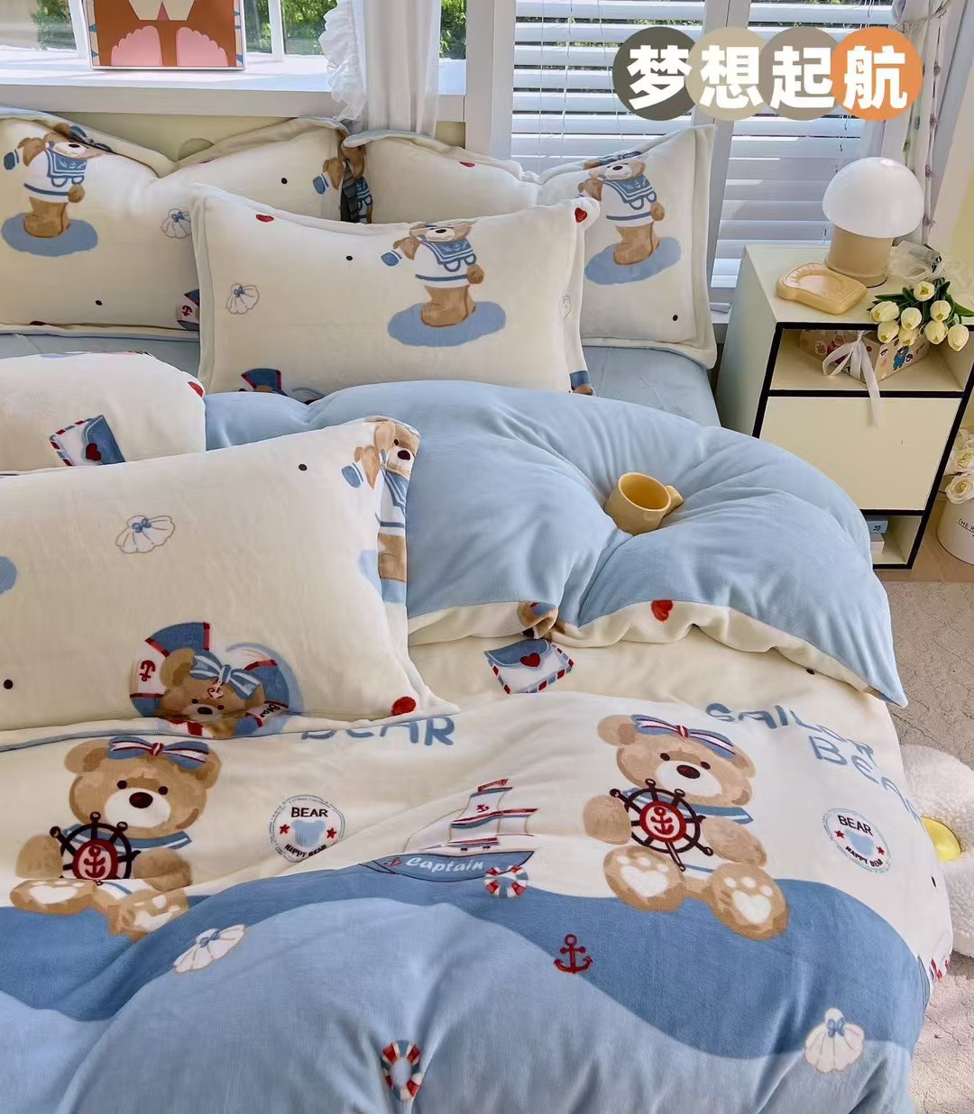 【牛奶绒四件套】甄选优质牛奶绒,加厚保暖,绒毛细腻,内附抗静电丝,婴幼儿可使用-CC