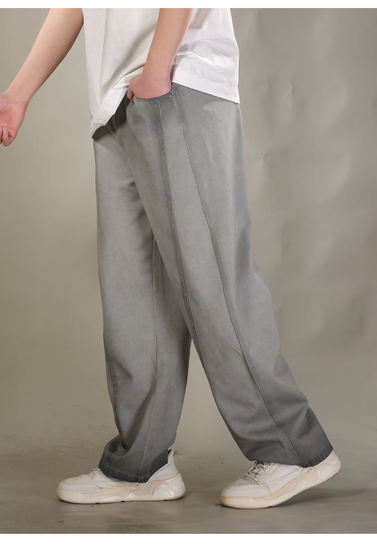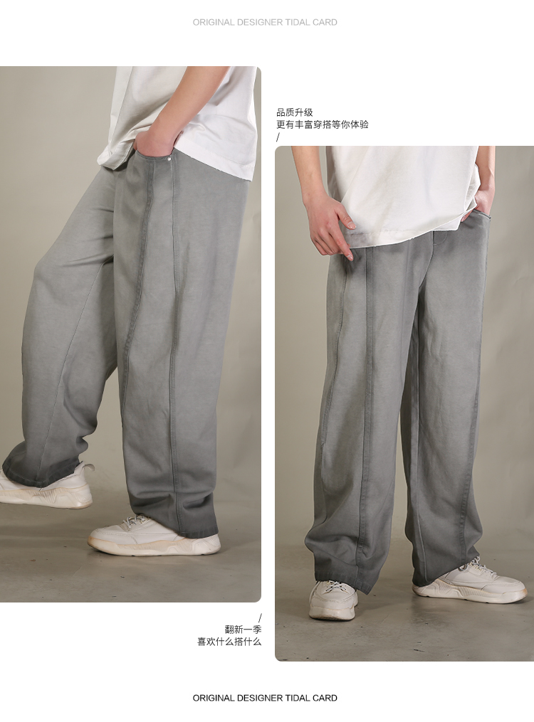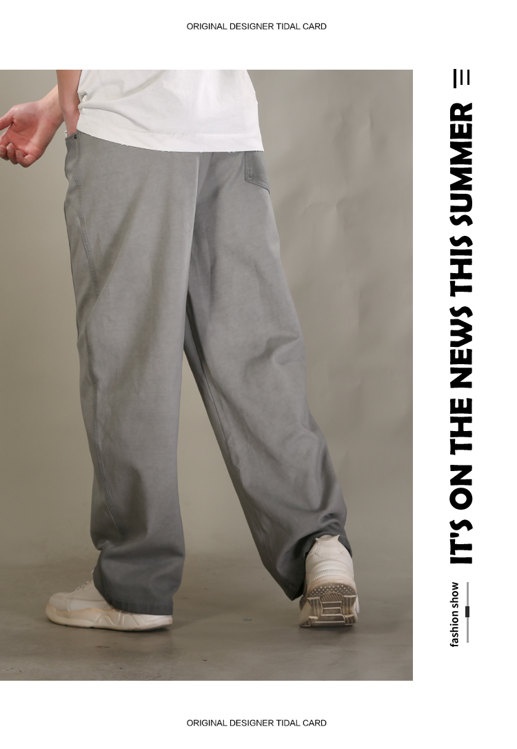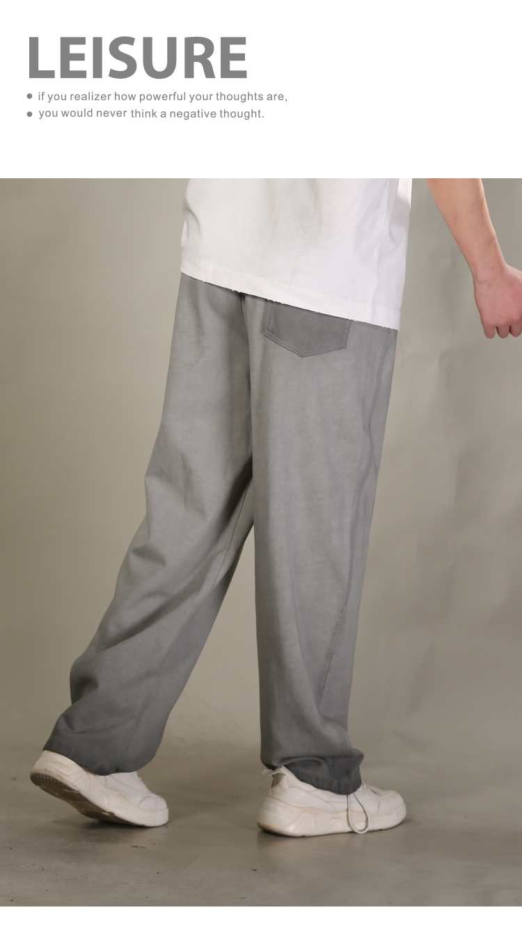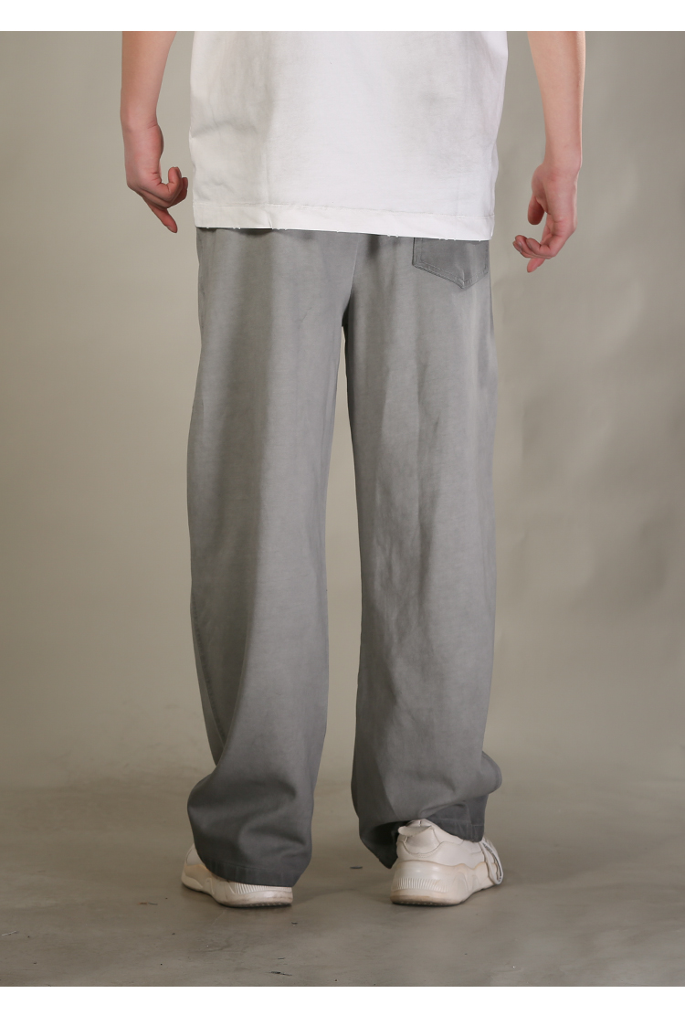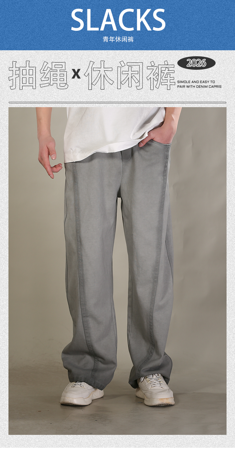 DRONKOO 2026 抽绳松紧前斜裁毛边喷色做旧中厚卫裤长裤