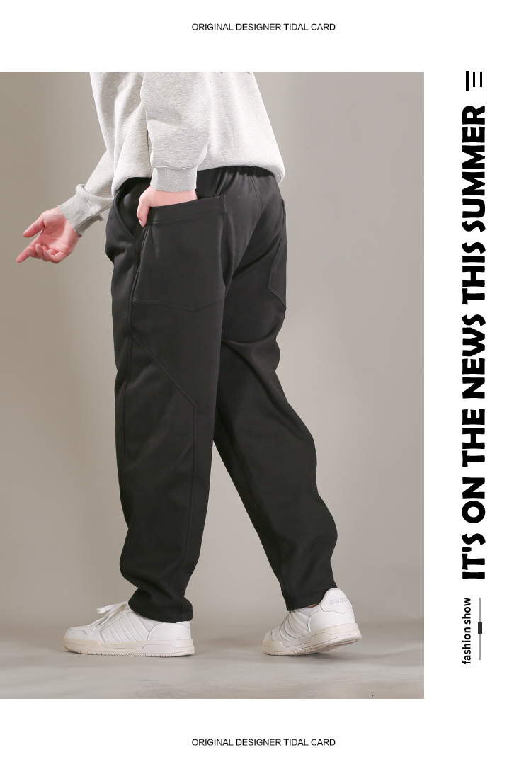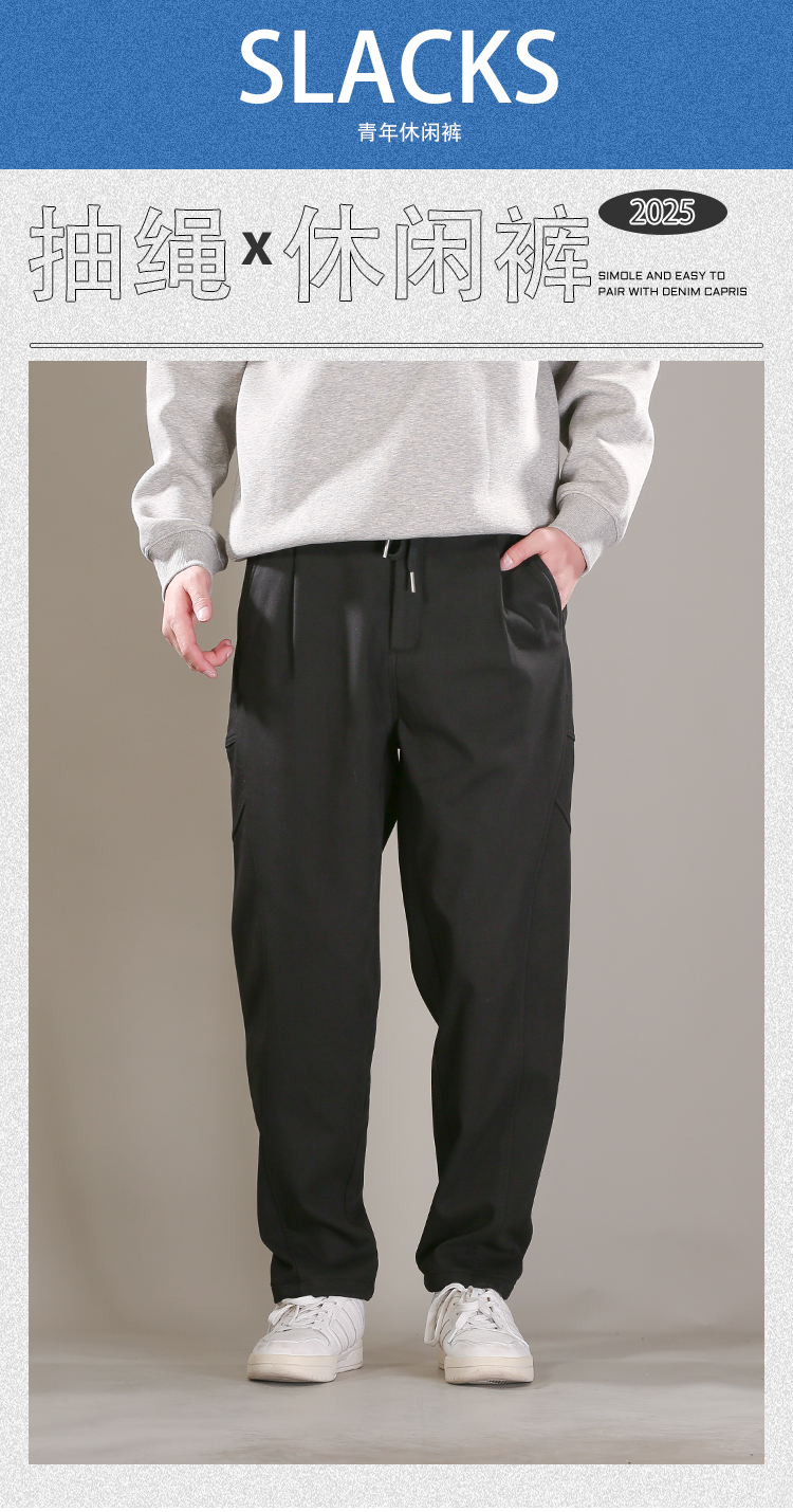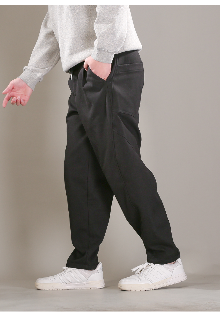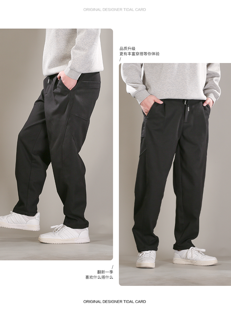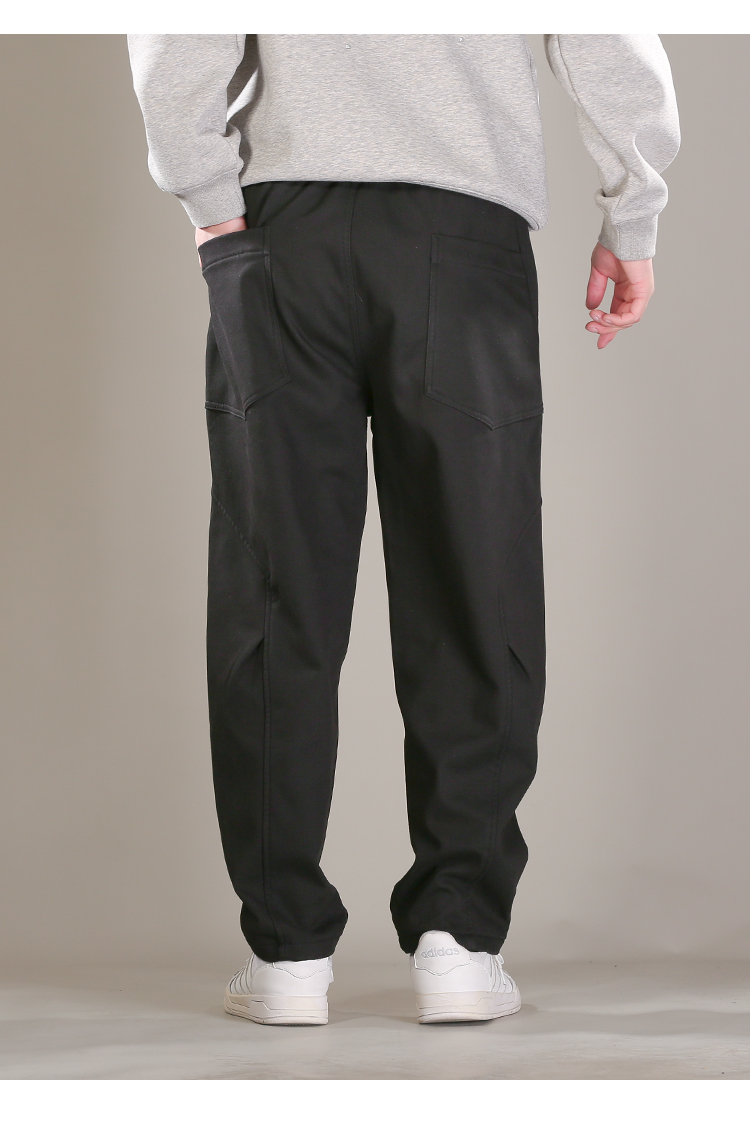 DRONKOO 2025 半松紧腰前折线破缝后大贴袋复合绒厚休闲长裤