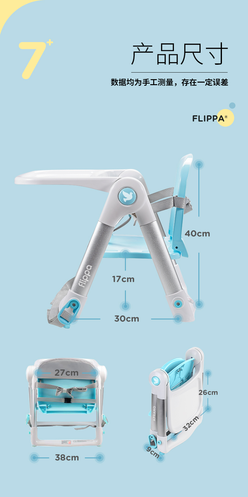 Apramo安途美【flippa Classic】宝宝小餐椅家用便携式可折叠餐椅 多色可选