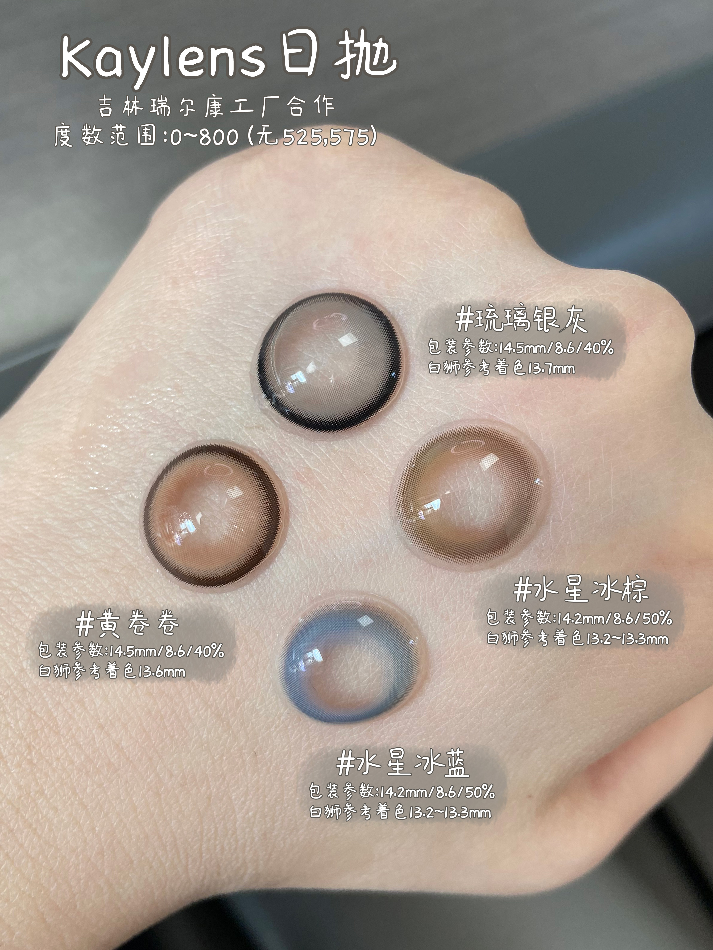 kaylens日抛|黄卷卷&琉璃银灰|14.5mm白狮参考着色中大直径|国产日抛