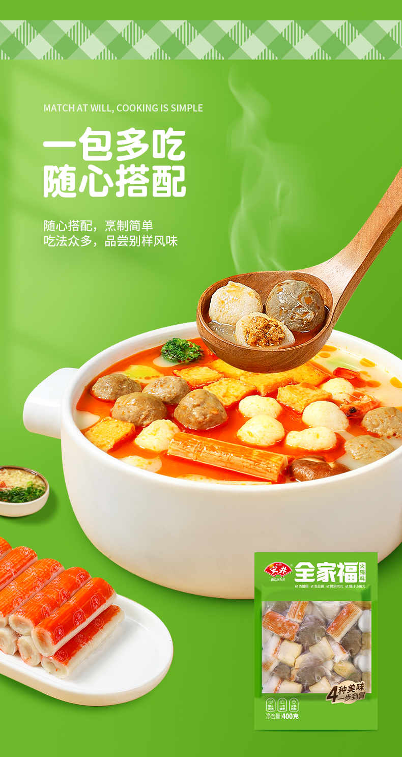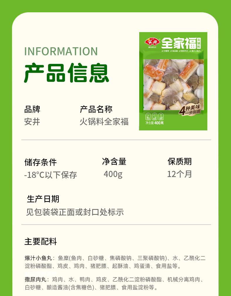 400g 安井 全家福混合丸子 仿蟹柳鱼豆腐撒尿肉丸爆汁小鱼丸火锅麻辣烫丸子