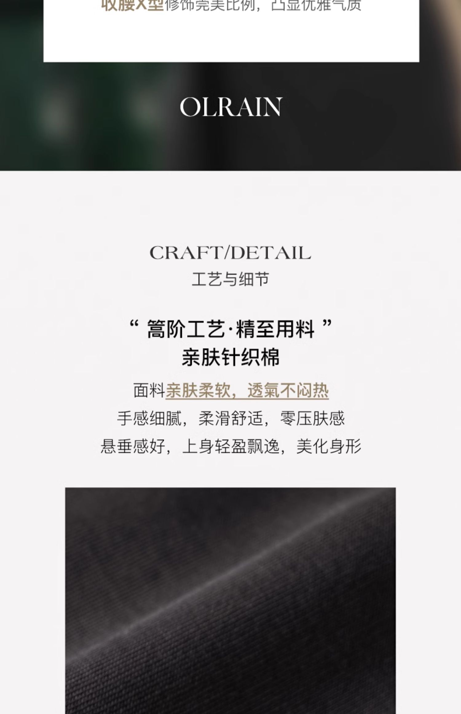 - “精致”是欧芮儿olrain品牌文化的核心,欧芮儿认为,精致的女人,不但要外在动人,更要内在迷人,内外兼修,有魅力、有气质、有内涵,自信而不自傲,优雅而不矫揉,自有万种风情而不轻浮,更不故作矜持。