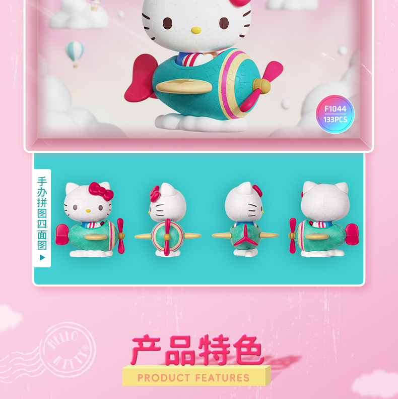 133片 F1044 飞行员-Hello Kitty立体造型拼图系列