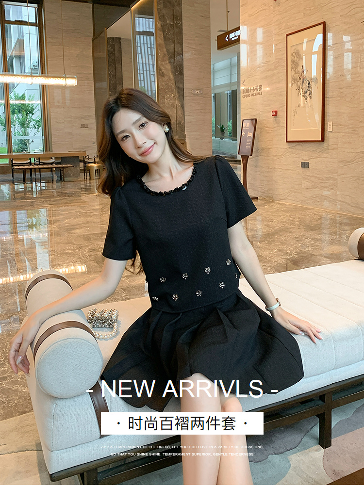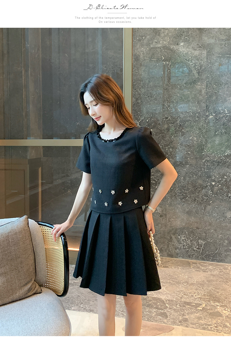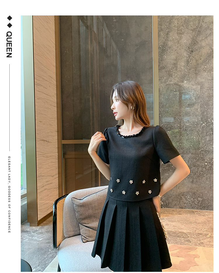 【清仓超15天不保价】奢姿大码女装2025夏季花朵立体装饰松紧两件套胖妹妹小香风套装9952958324