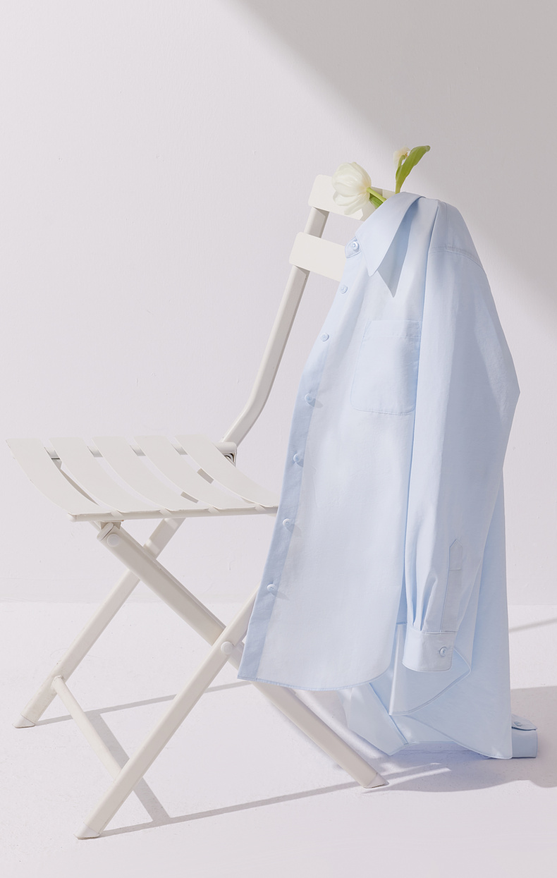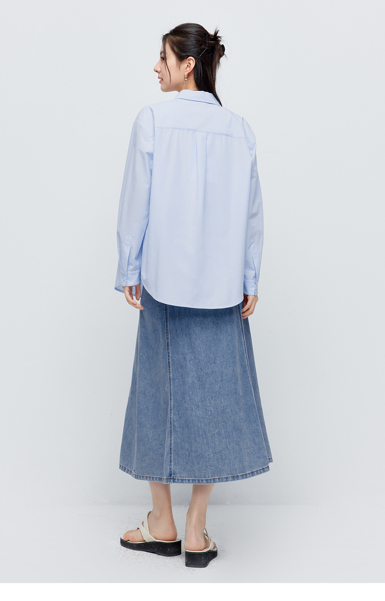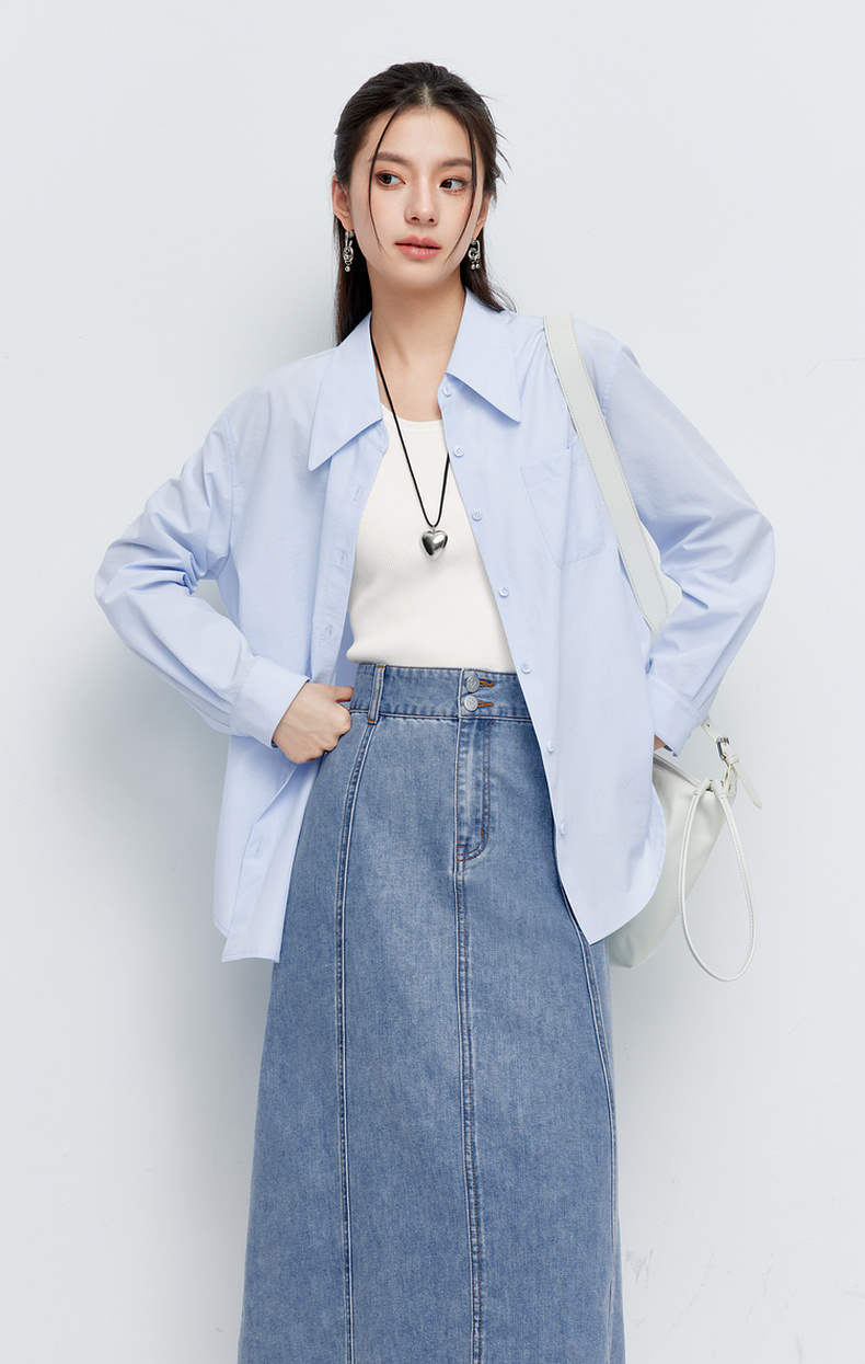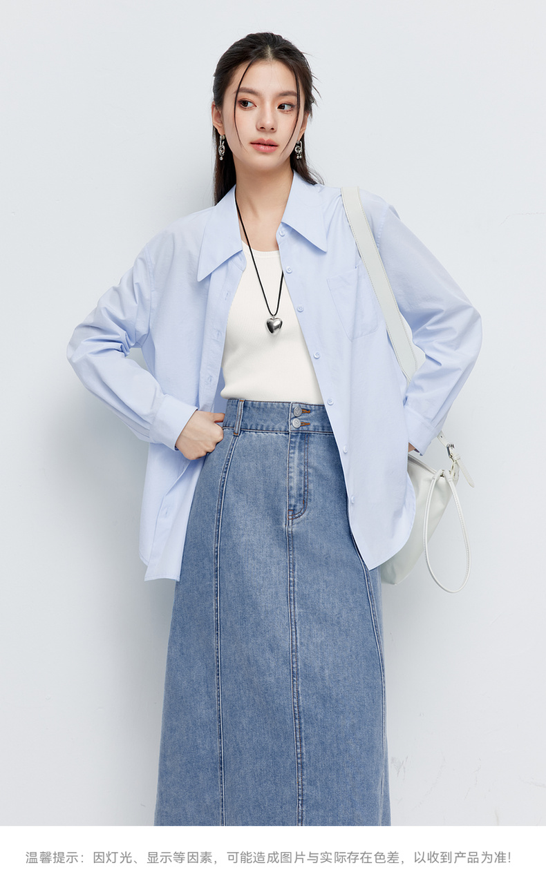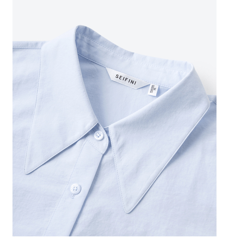 【商场同款】诗凡黎蓝色翻领衬衫2024夏新款衬衣女3F4121101