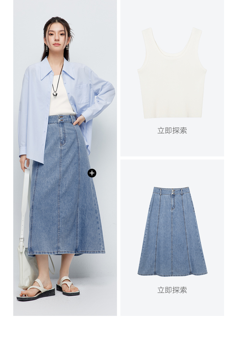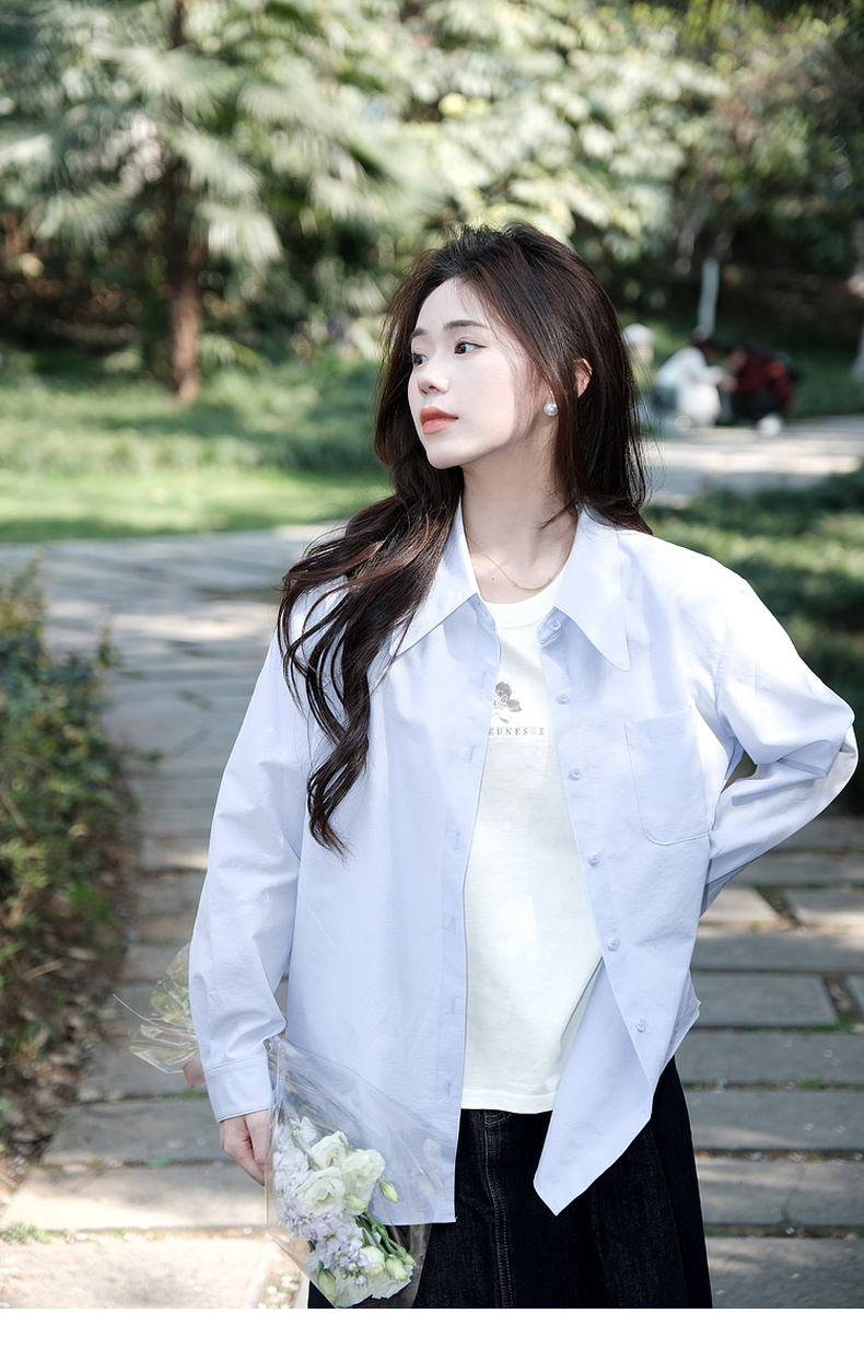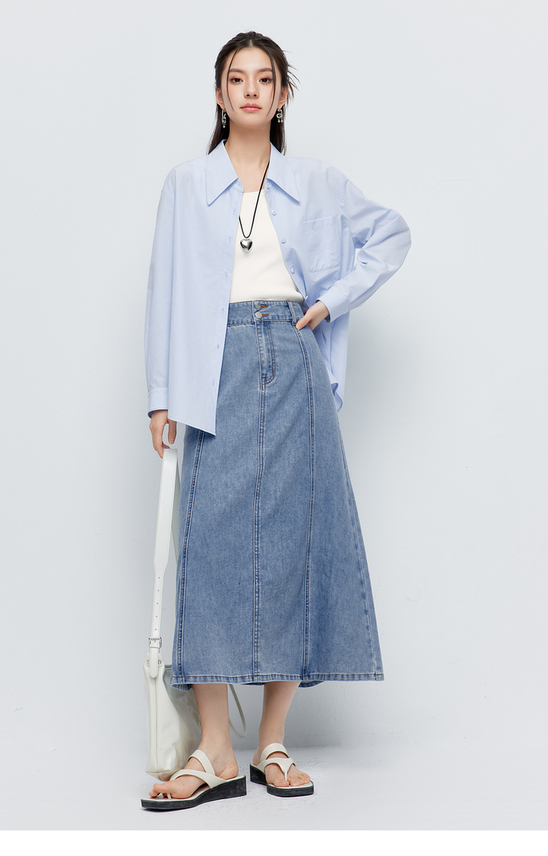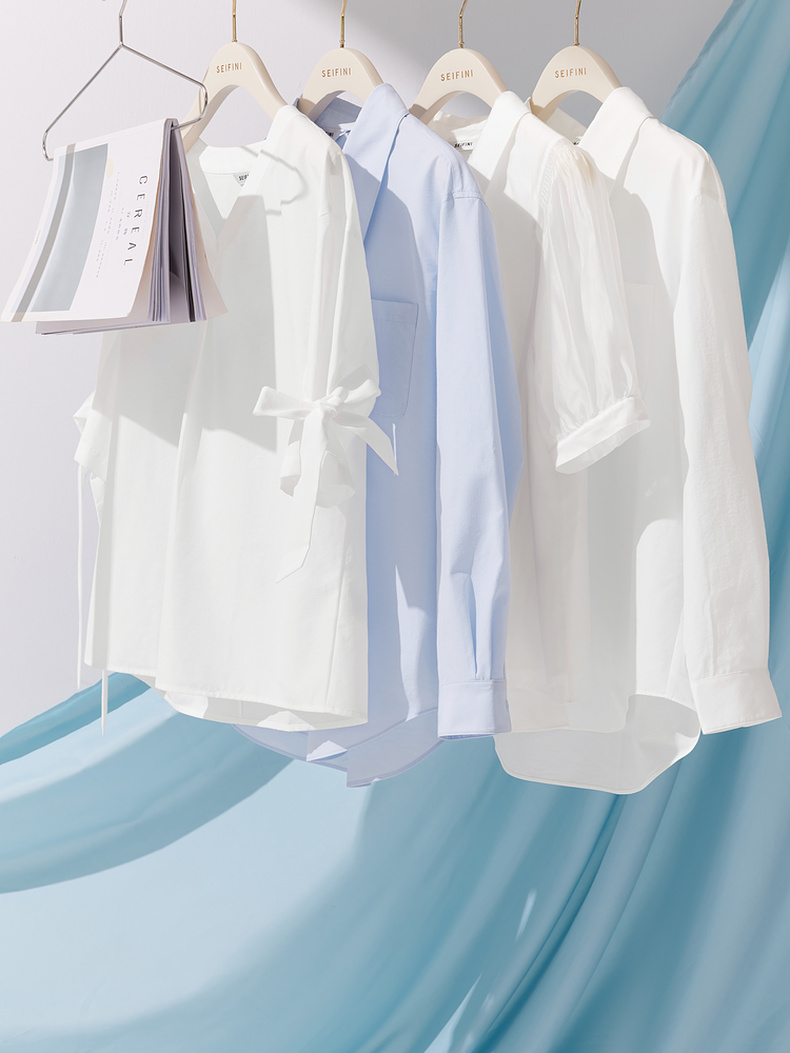 【商场同款】诗凡黎蓝色翻领衬衫2024夏新款衬衣女3F4121101