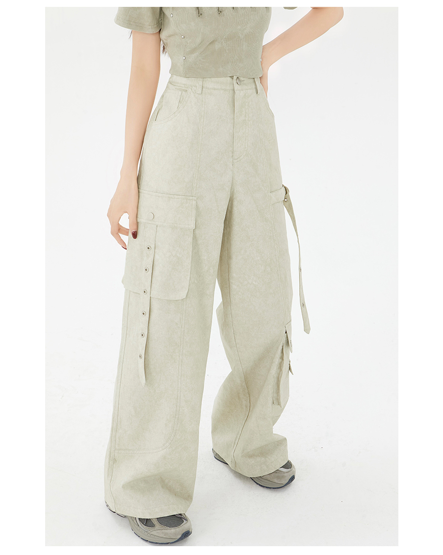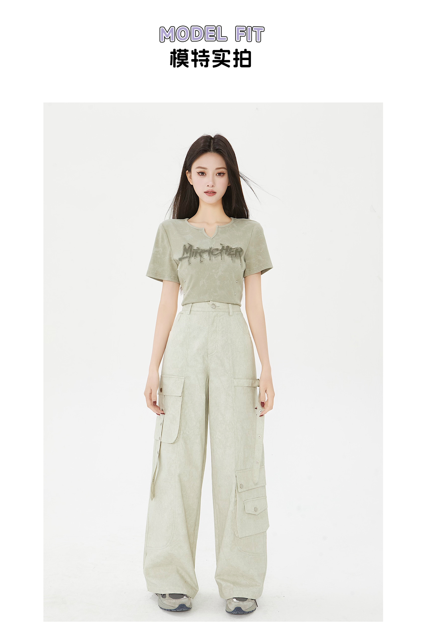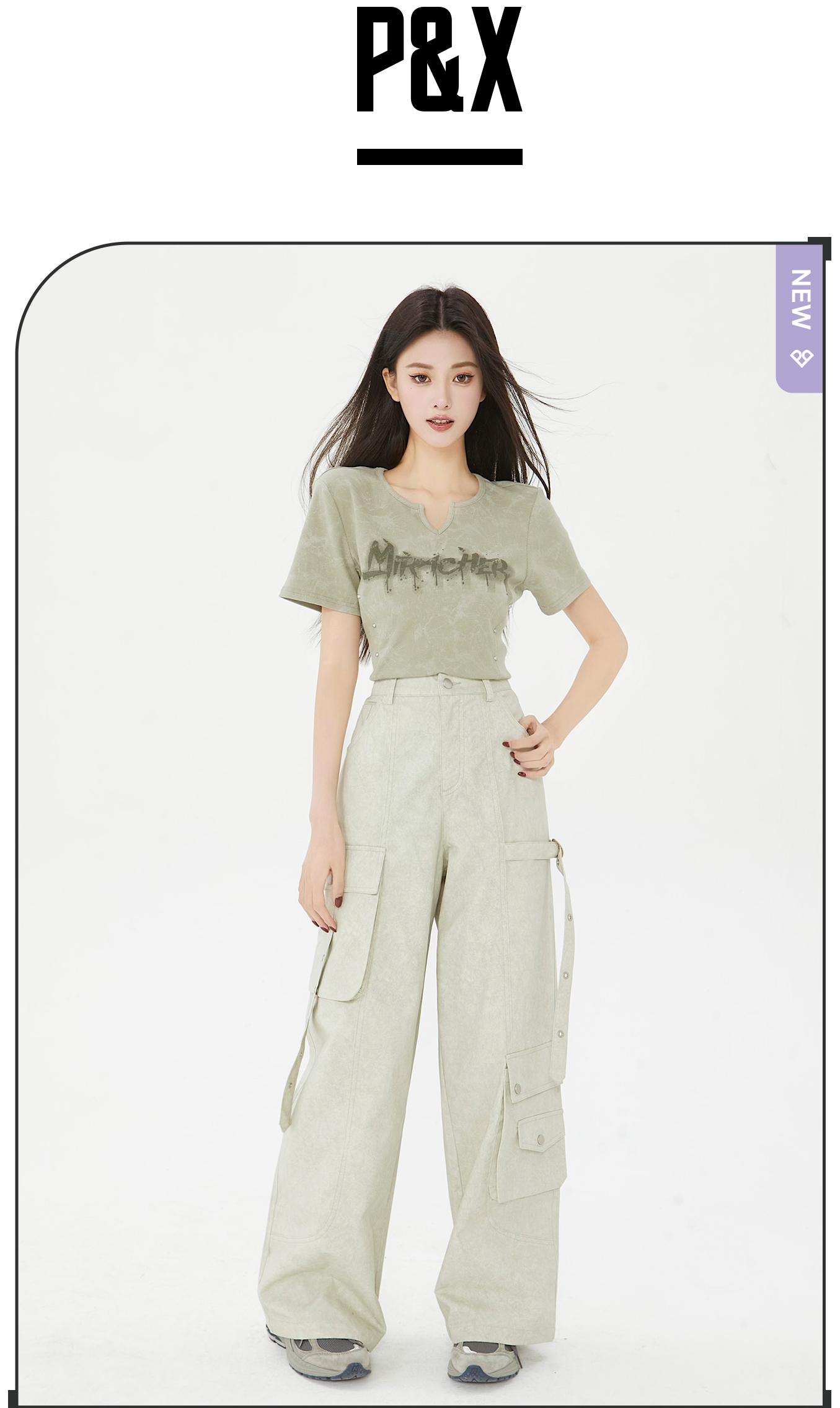 P&X设计师女装2025夏季梭织户外工装阔腿休闲长裤825209213 浅绿