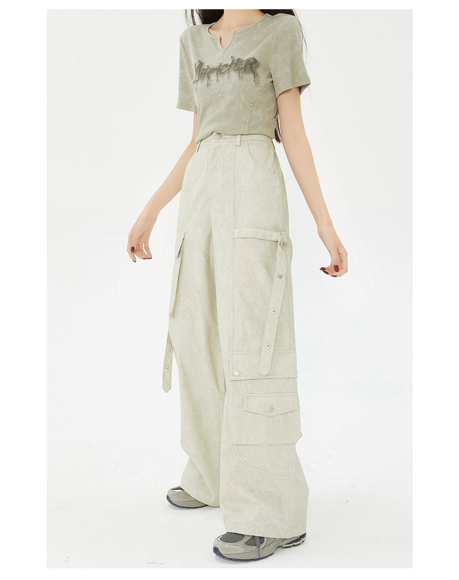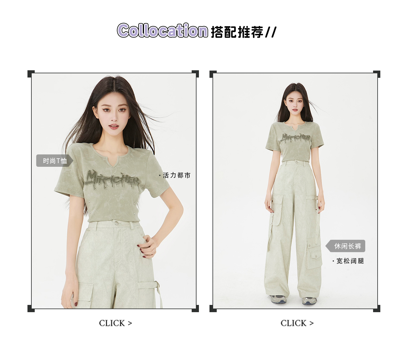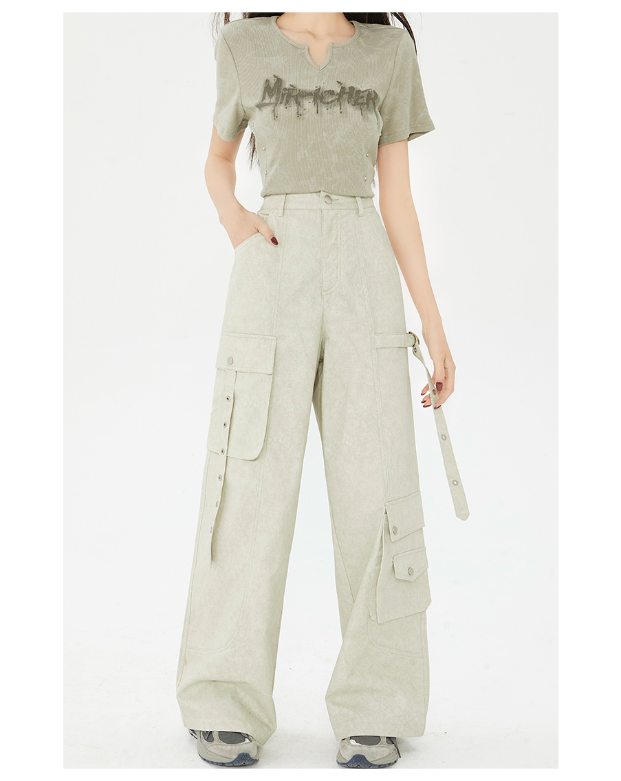 P&X设计师女装2025夏季梭织户外工装阔腿休闲长裤825209213 浅绿