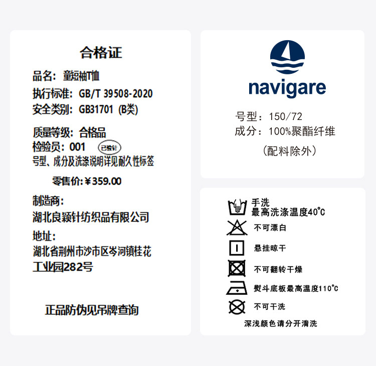 【纳维凯尔】【120-165】Navigare意大利小帆船男女童速干短袖T恤