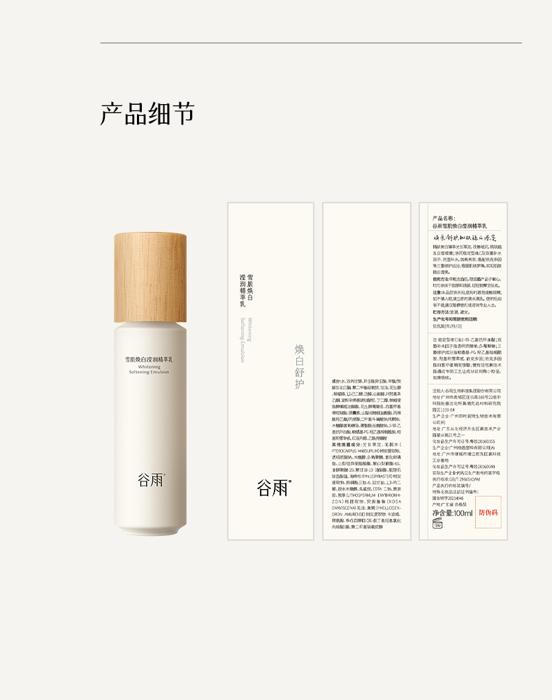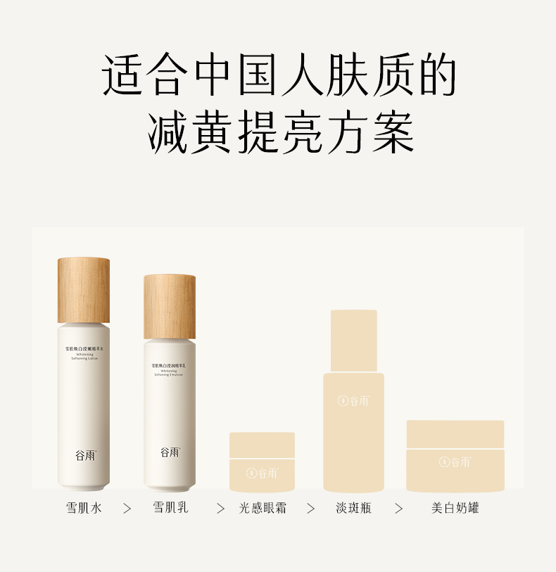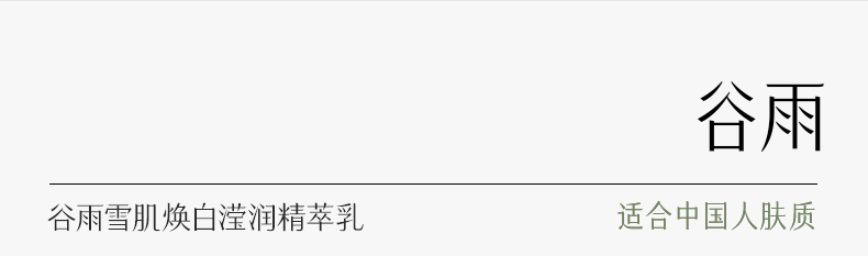 - 谷雨,更适合中国人肤质的植萃美白。专研中华珍稀美白植萃光甘草定,深入研究中国人肤质特点,打造中国女性独有的仙气白。