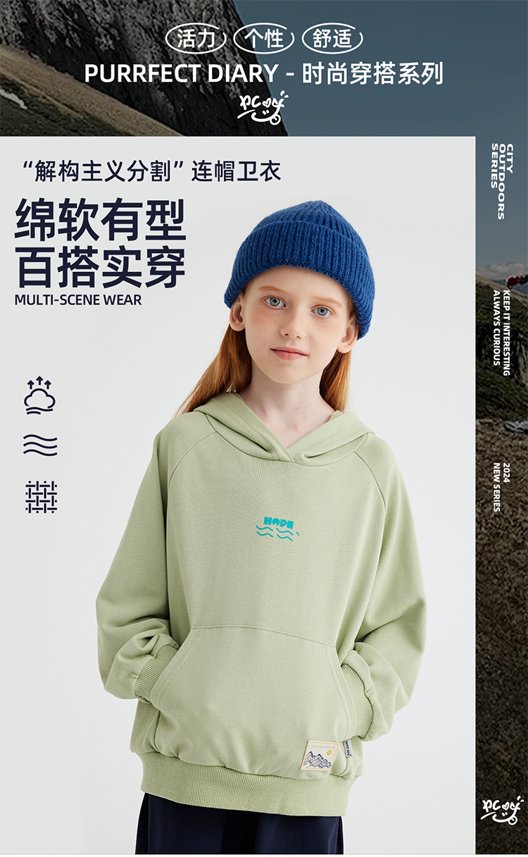 【咕噜日记】【基础简约又好搭】儿童印花百搭连帽卫衣 PQWY2402