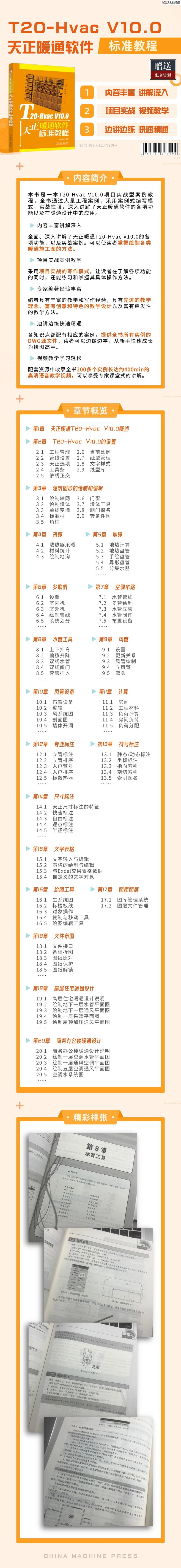 本书是一本T20-Hvac V10.0项目实战型案例教程,全书通过大量工程案例,深入讲解了天正暖通软件的各项功能以及在暖通设计中的应用。