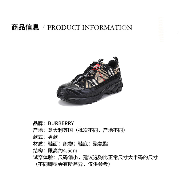 BURBERRY/博柏利【22春夏新款】男款织物Arthur系带休闲运动鞋Vintage格纹 80390471