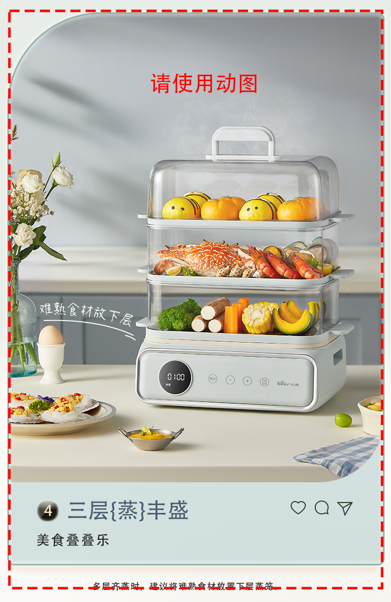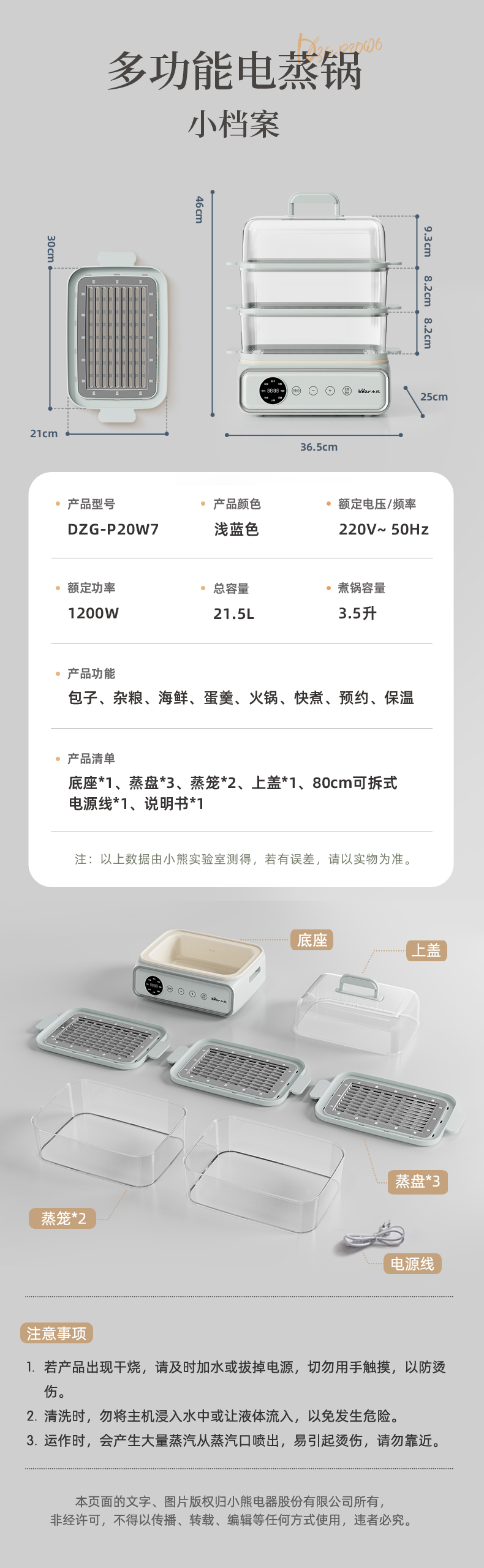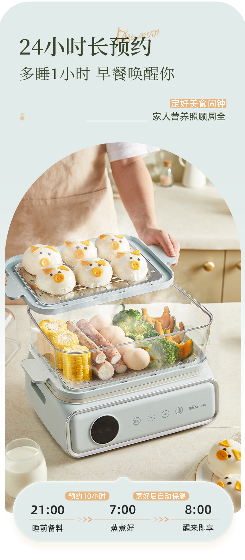 【小程序】小熊电蒸锅 蒸蛋器 蒸锅家用 电蒸笼 多功能早餐包子电热煮锅 大容量可预约定时不锈钢蒸盘DZG-P20W7