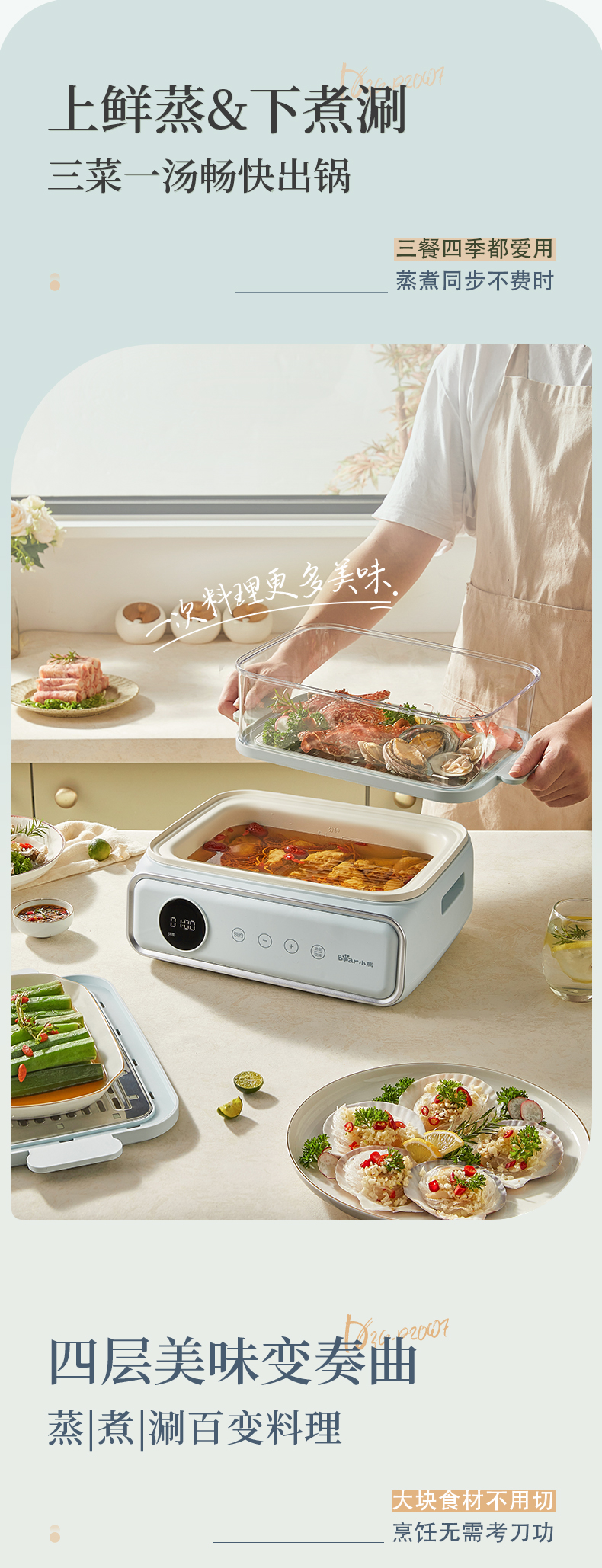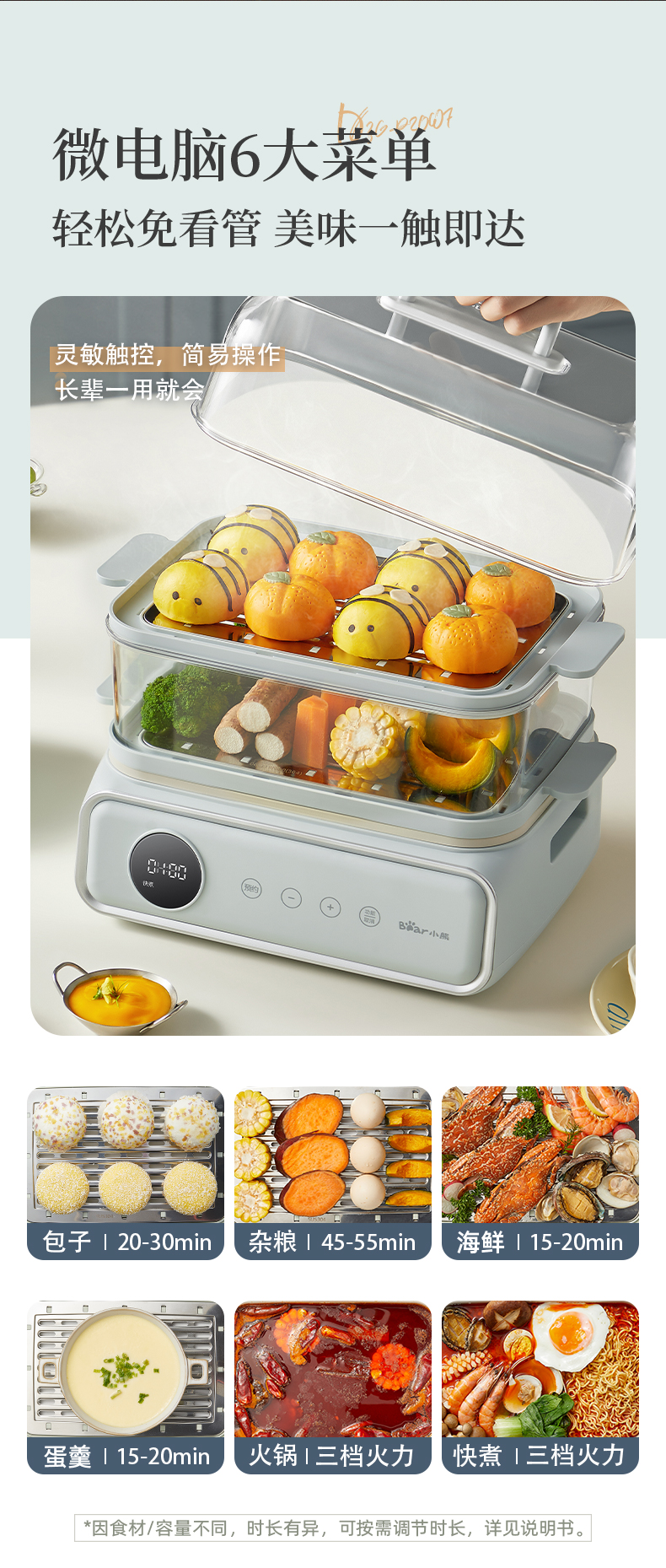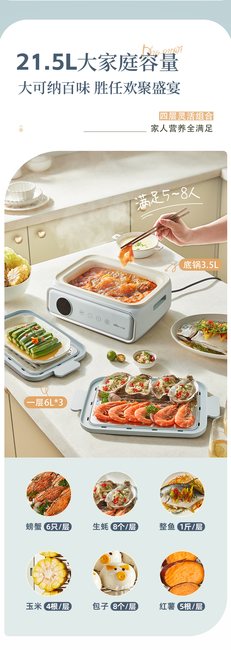 【小程序】小熊电蒸锅 蒸蛋器 蒸锅家用 电蒸笼 多功能早餐包子电热煮锅 大容量可预约定时不锈钢蒸盘DZG-P20W7