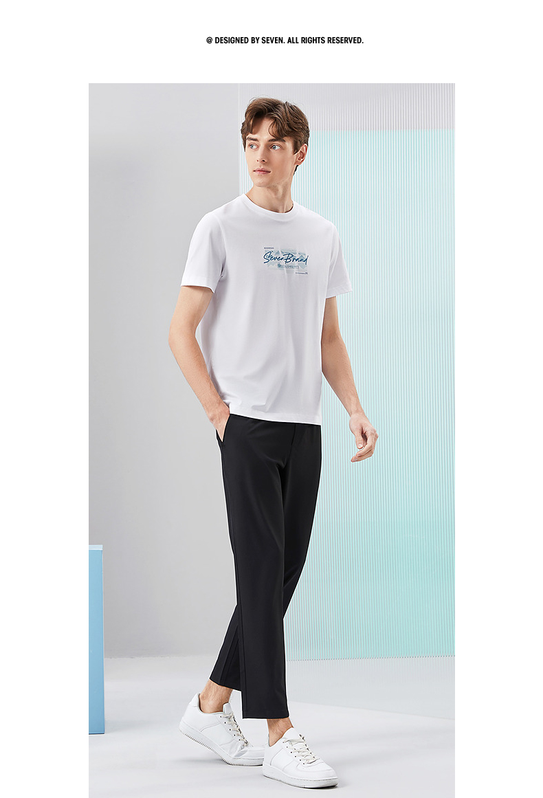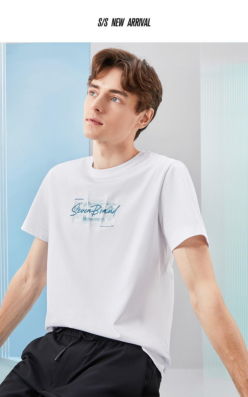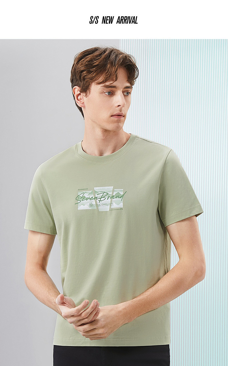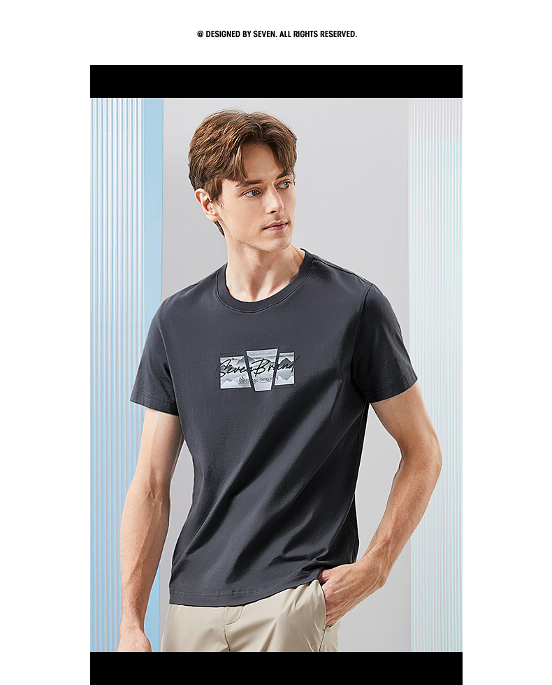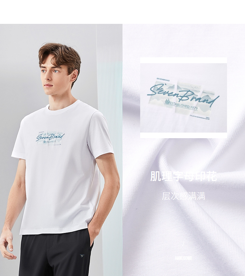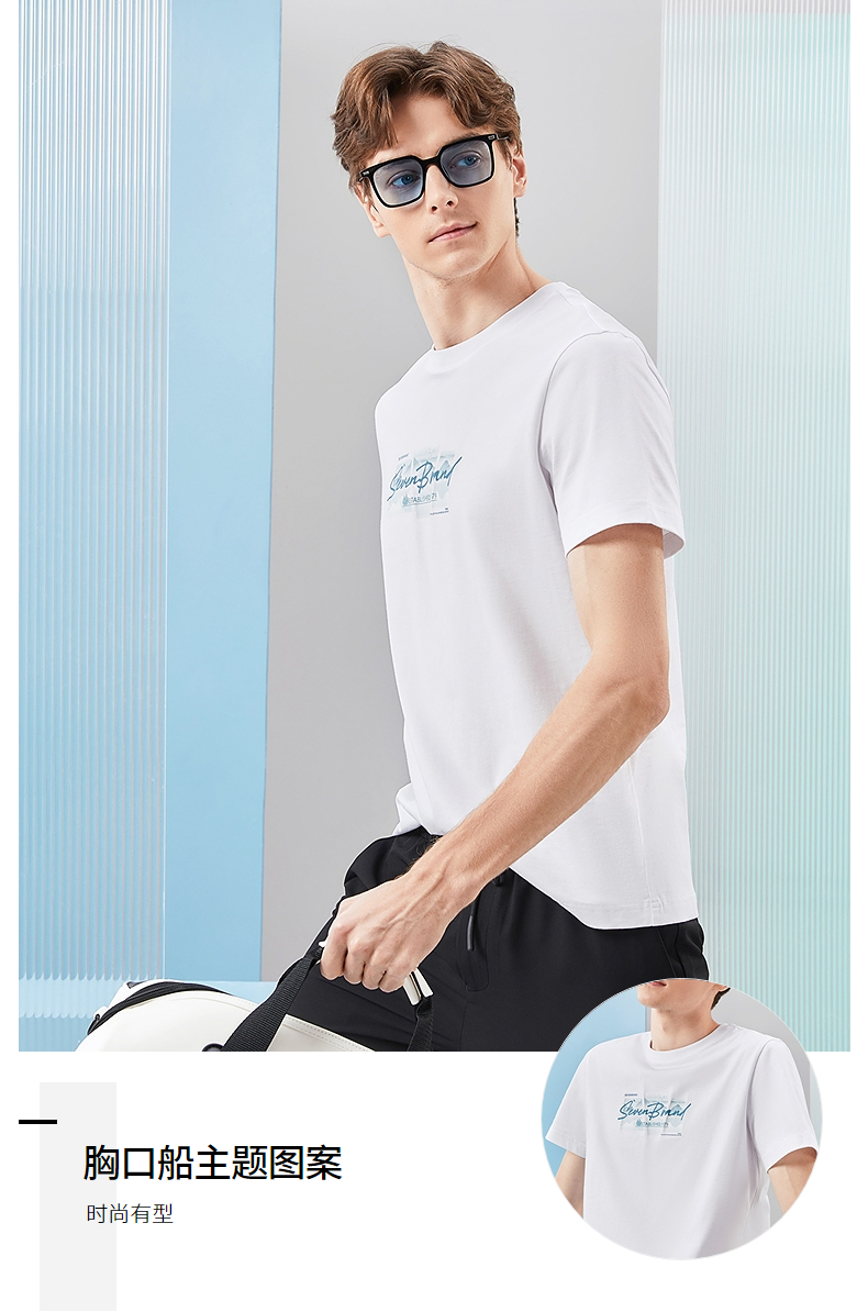 【速干】柒牌纯棉短袖T恤男2024夏季新款时尚休闲中青年圆领上衣126T71410