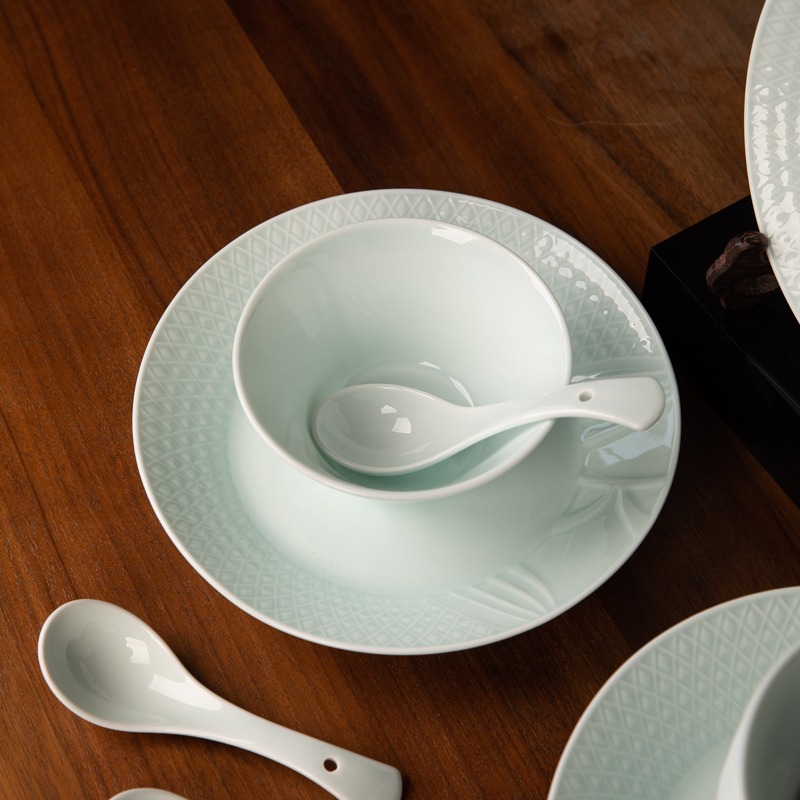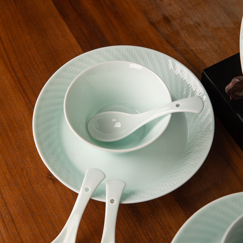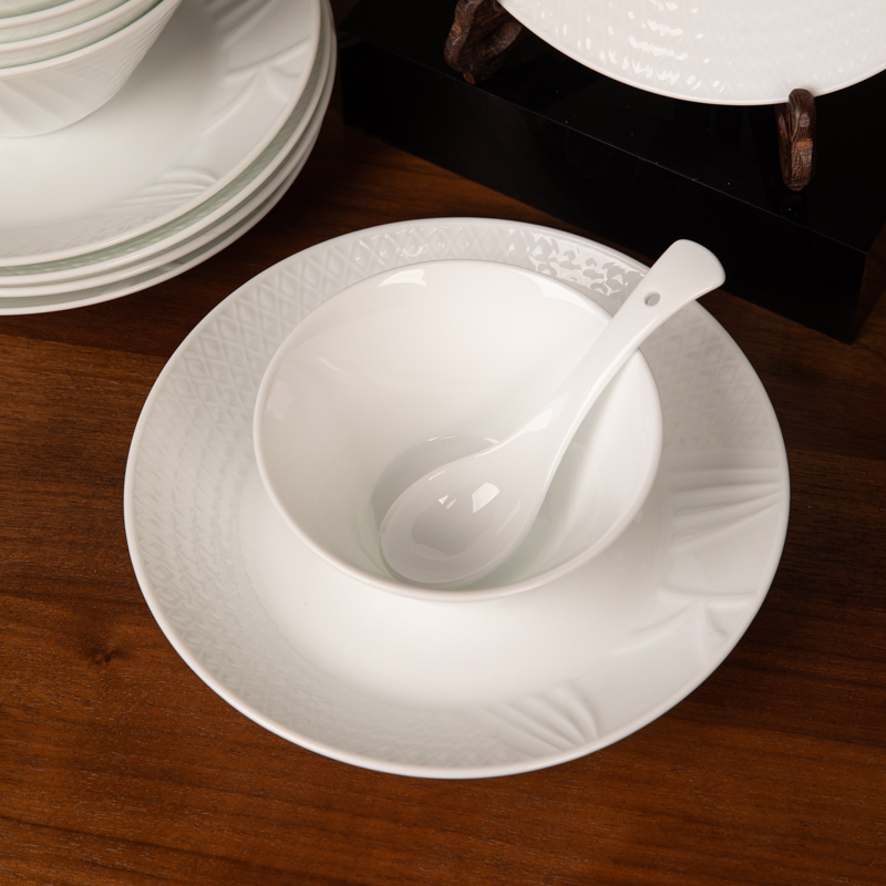 品相描述:竹编纹理为基,藏质朴匠心。复刻民间竹编的经纬交错肌理,线条细密规整,带着手工编织的自然质感,既还原了竹编“经纬皆有序,横竖藏乾坤”的古朴韵味,又象征着生活的安稳踏实。瓷面的竹纹触感细腻,光影下似有竹影婆娑,仿佛把江南竹篱小院的闲适,端上了日常餐桌。乘风纹理为韵,展向上之势。流线型纹理顺势而上,如清风拂过的涟漪,似鹏鸟振翅的轨迹,线条舒展且富有张力,勾勒出“扶摇直上”的昂扬姿态。纹样与竹编肌理错落交织,动静相宜,既打破了单一纹理的沉闷,又暗合“青云直上、步步高升”的美好寓意,让餐具不止有颜值,更有精神内核。