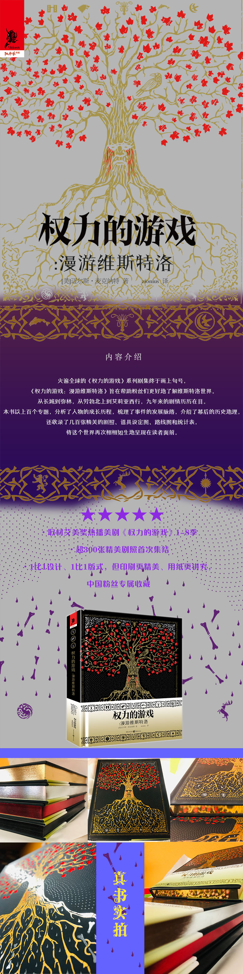 ·取材艾美奖热播美剧《权力的游戏》1-8季 ·超300张精美剧照首次集结 ·1比1设计、1比1版式,但印刷更精美、用纸更讲究,中国粉丝专属收藏