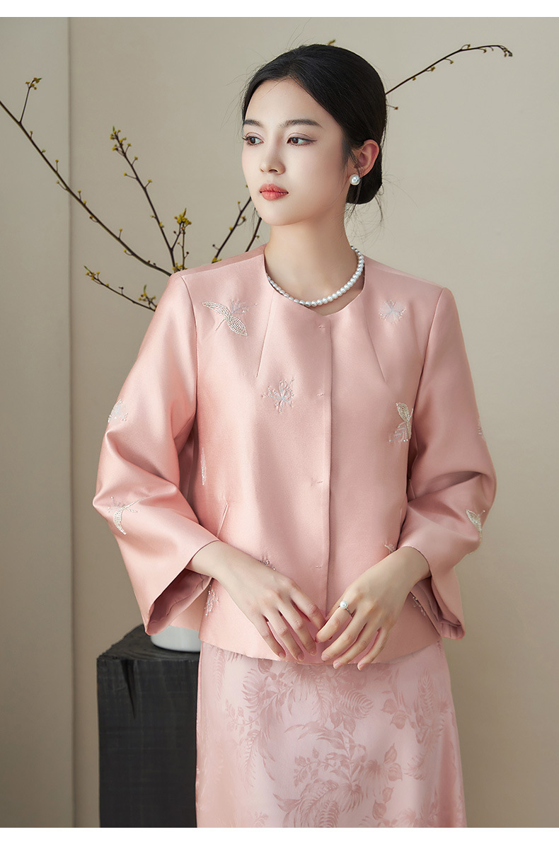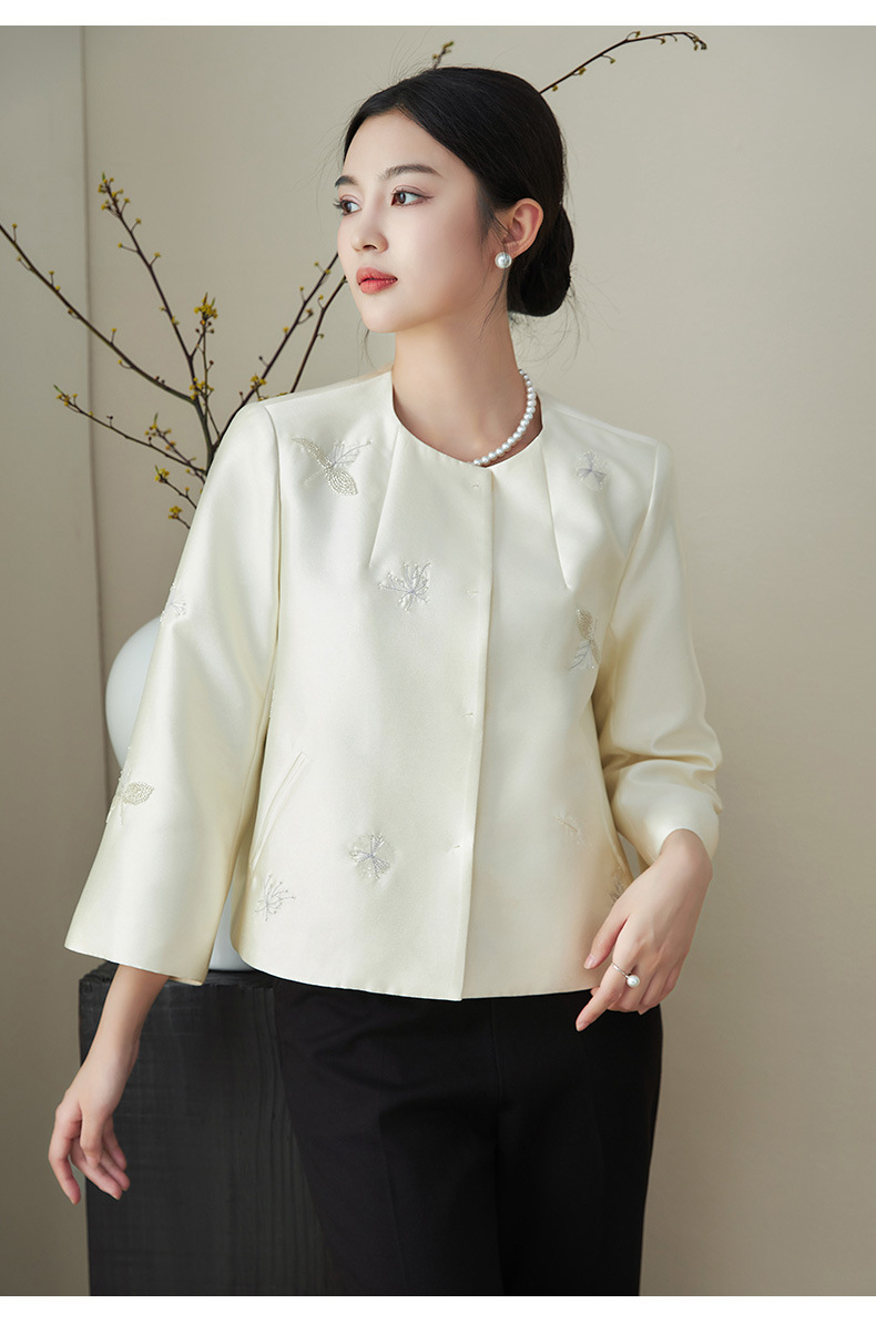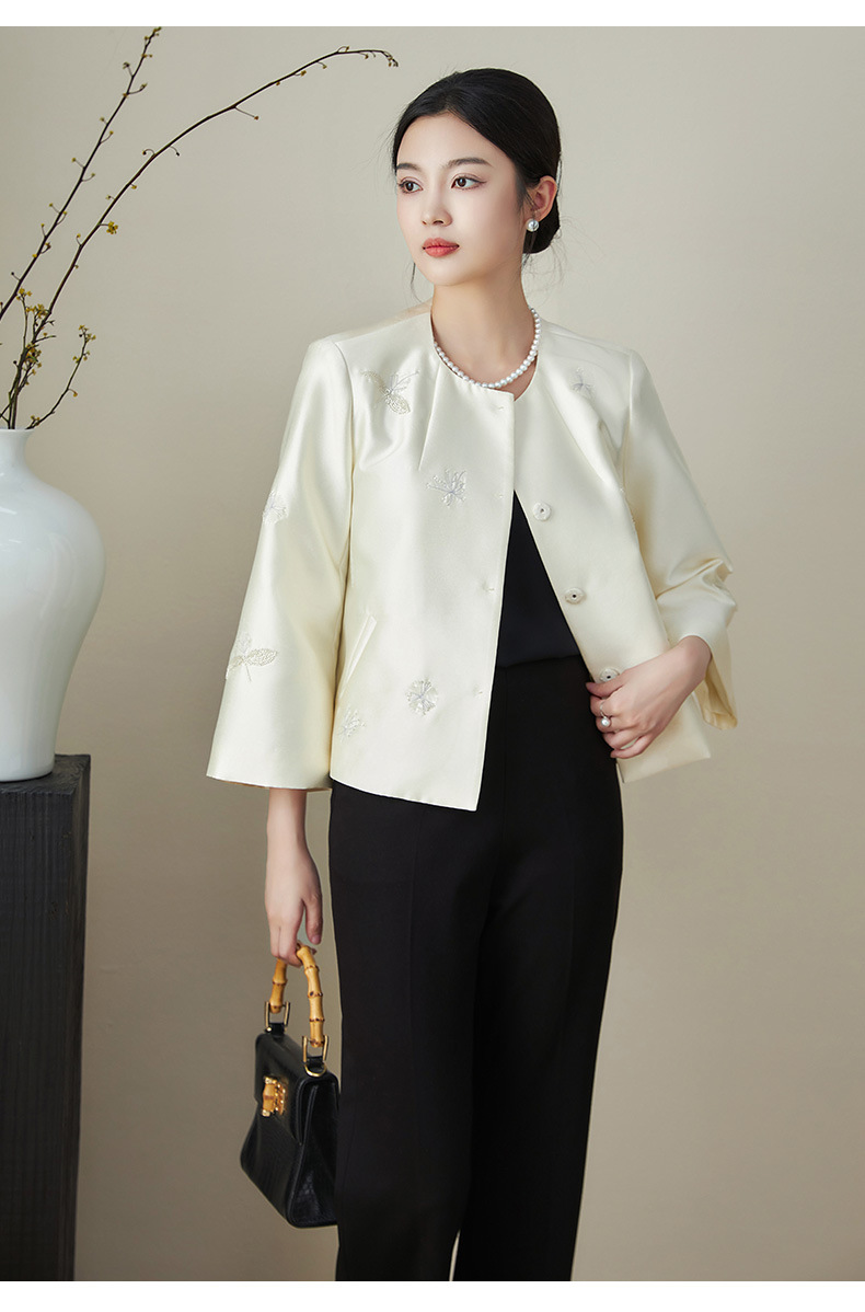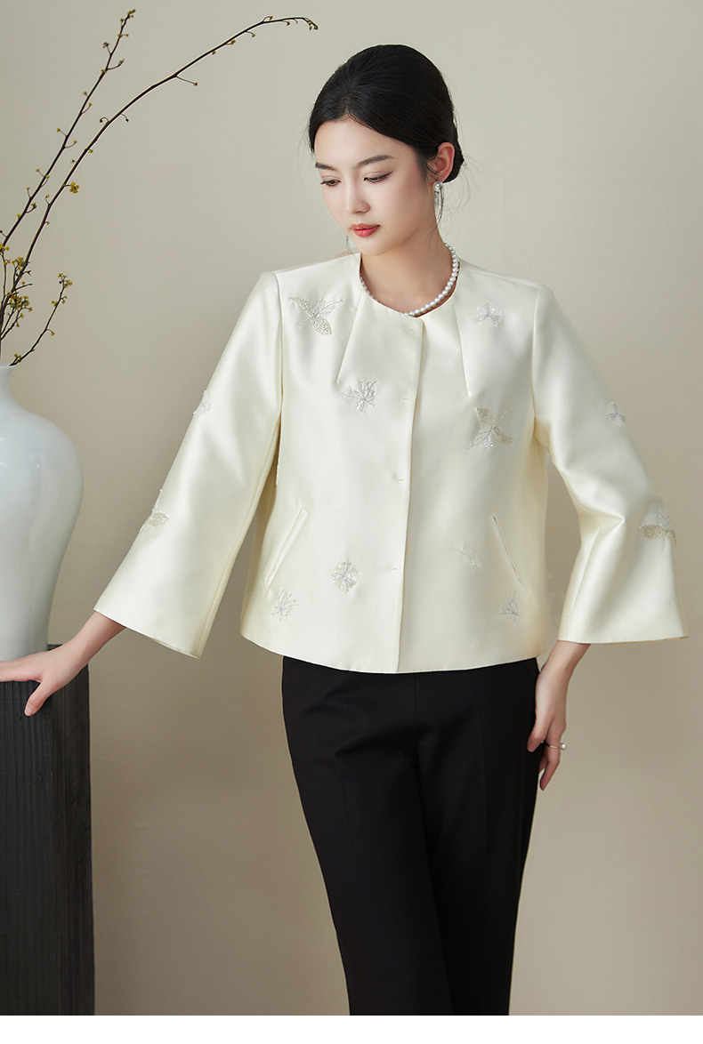 浪漫国风繁花钉珠,无领A型轻奢短款外套WLZD-2411106