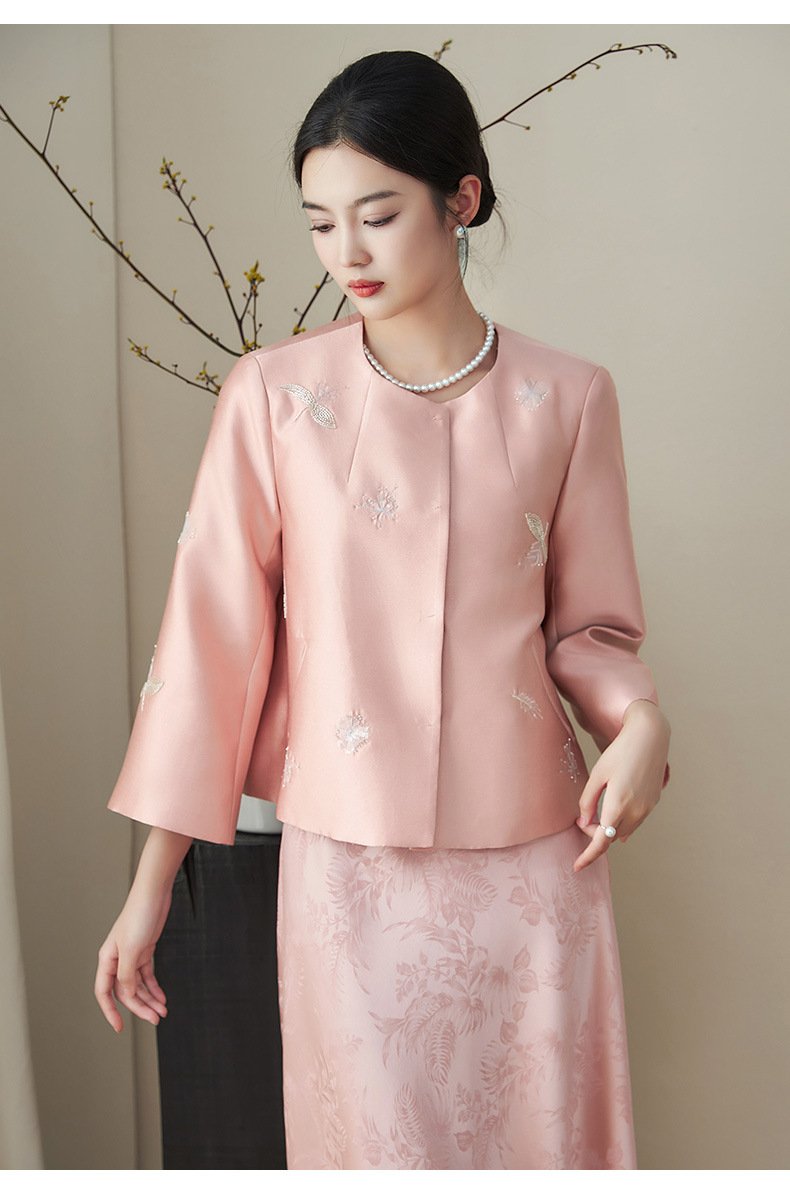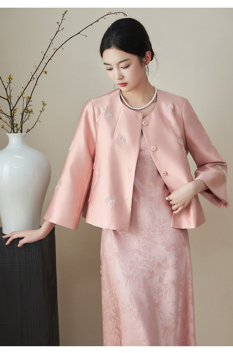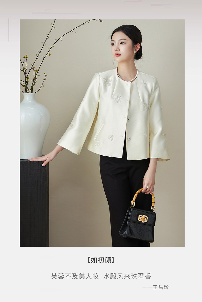 浪漫国风繁花钉珠,无领A型轻奢短款外套WLZD-2411106