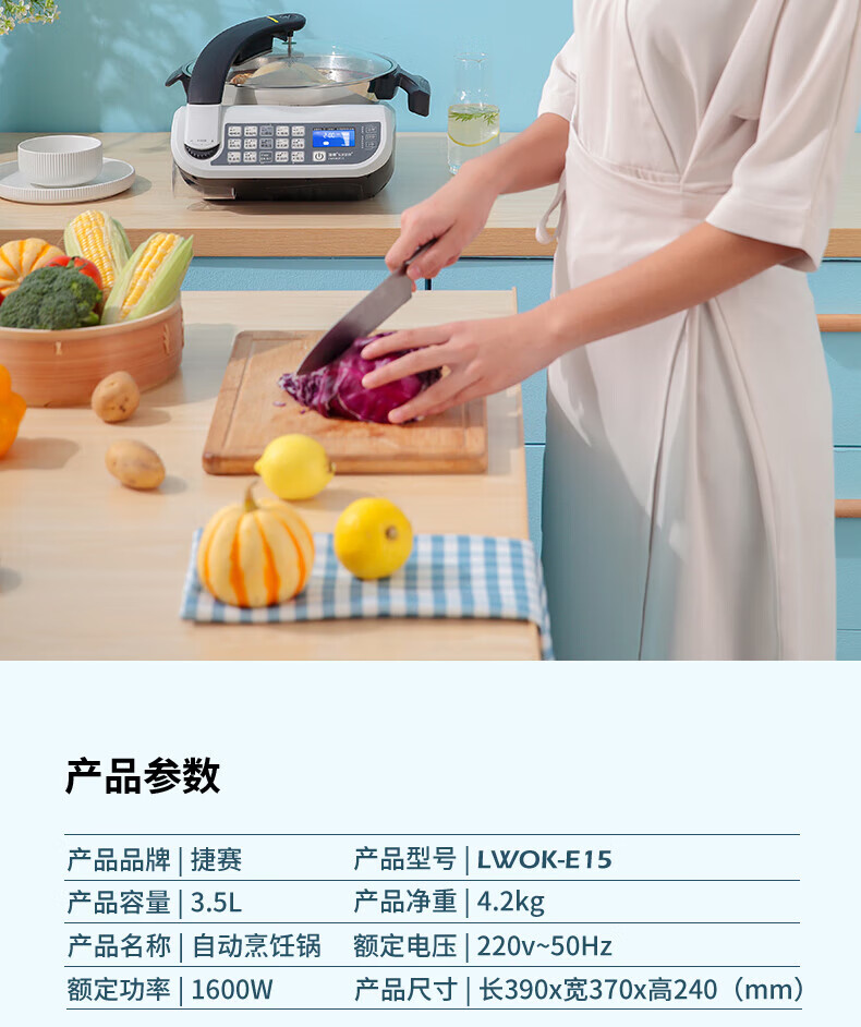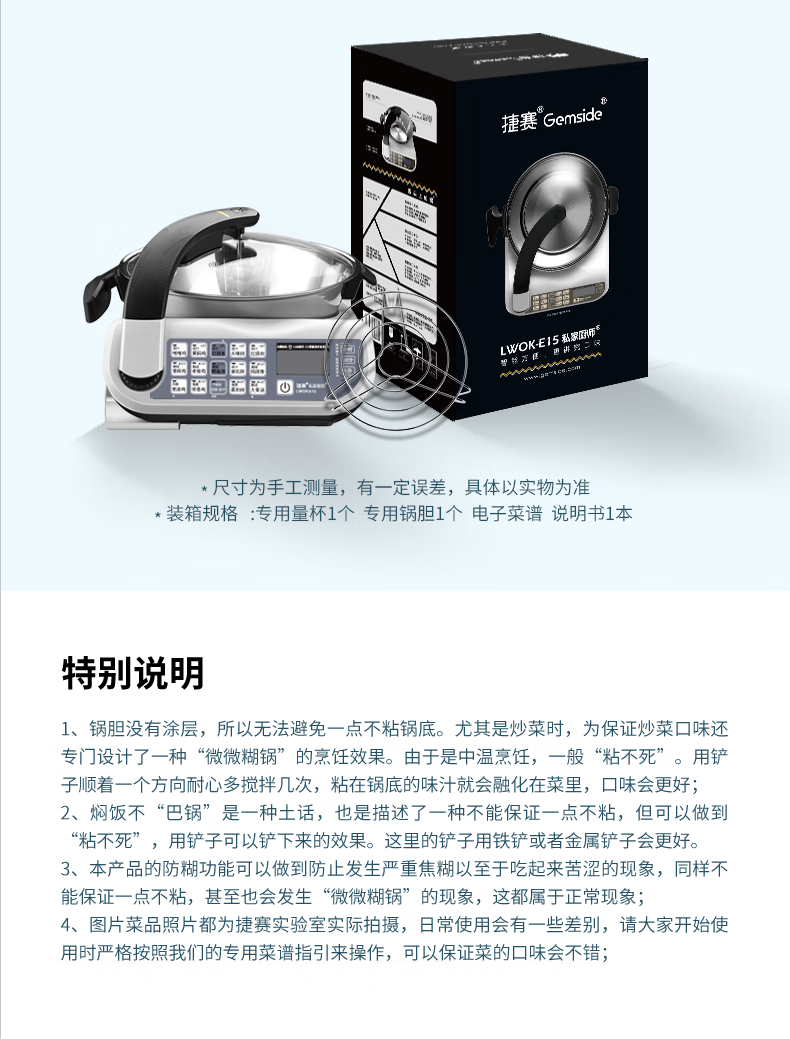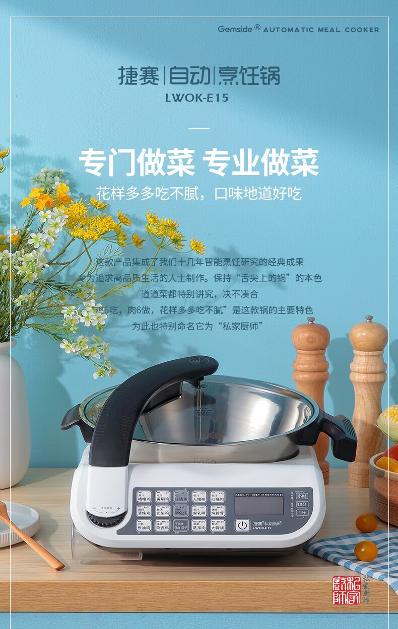 捷赛Gemside全自动智能炒菜机 多功能智能烹饪锅家用自动炒菜机器人无油烟不糊锅可定时预约LWOK-E15