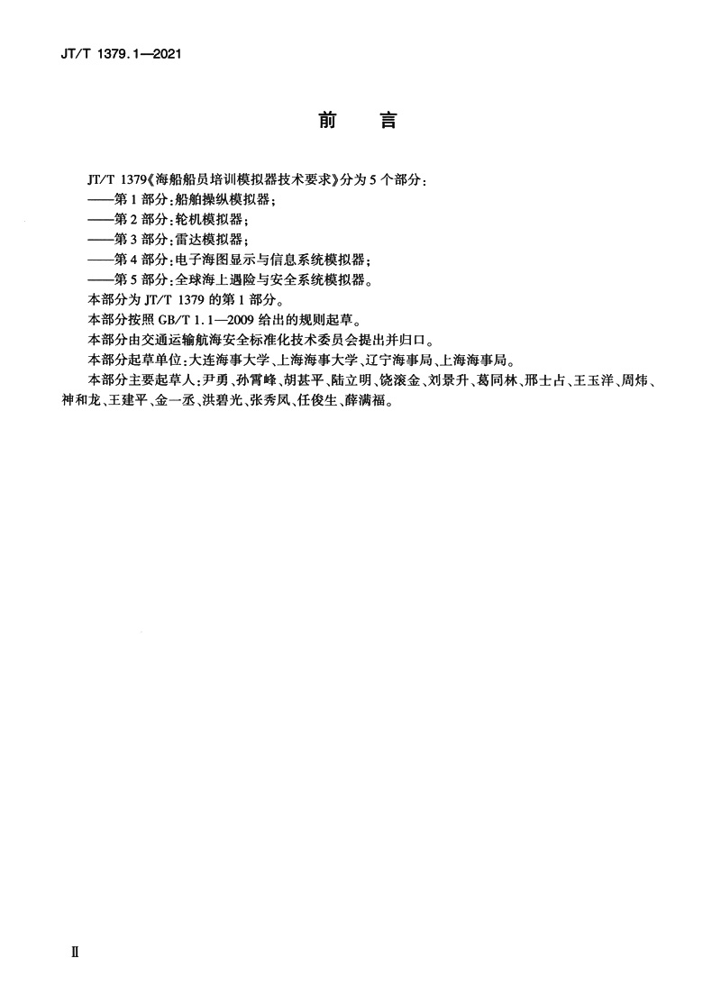 书名:海船船员培训模拟器技术要求 第1部分:船舶操纵模拟器(JT/T 1379.1—2021)