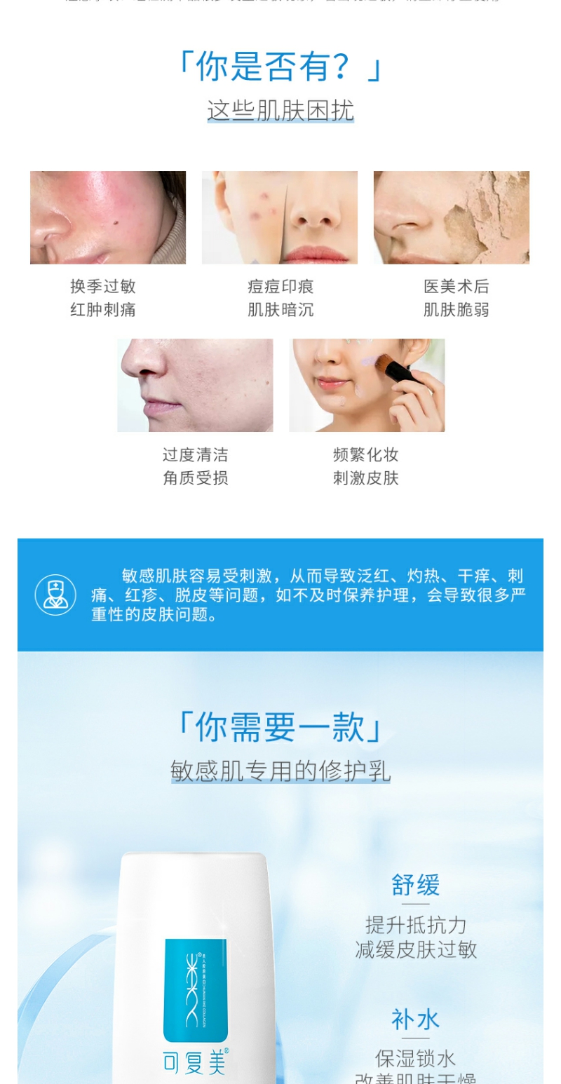 【YZ】可复美敏感肌泛红修护乳温和滋润皮肤不干燥保湿水乳液