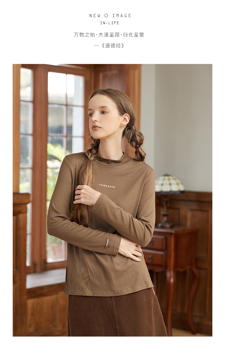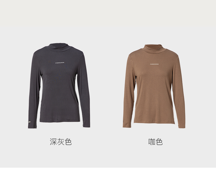 famecoco范可儿高弹字母印花t恤女半高领打底上衣长袖F228BB003