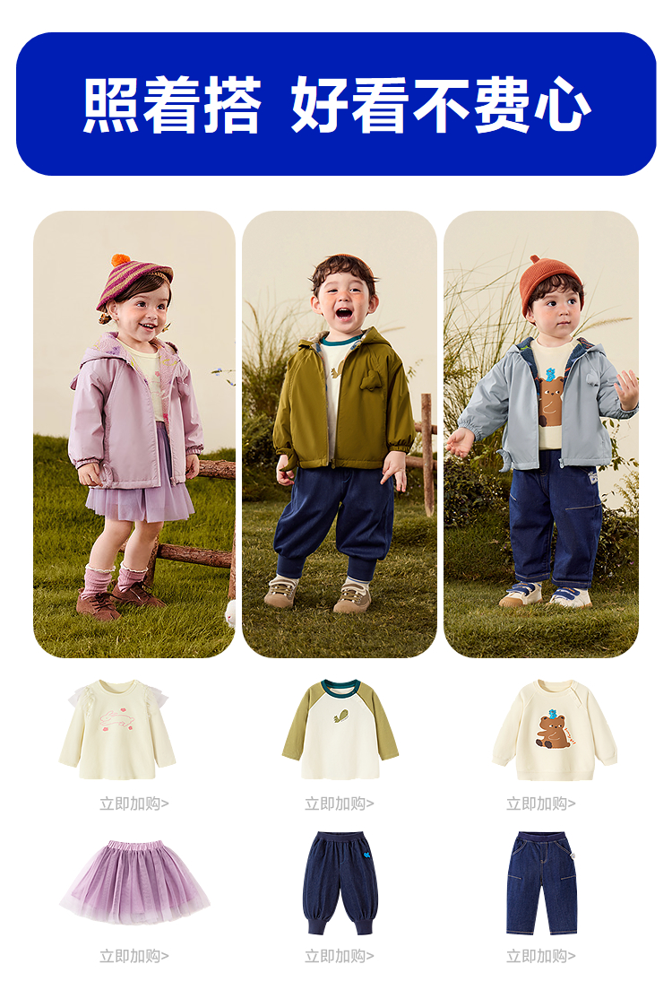 【小软皮】迷你巴拉男女童连帽外套萌趣柔软加绒保暖三防上衣