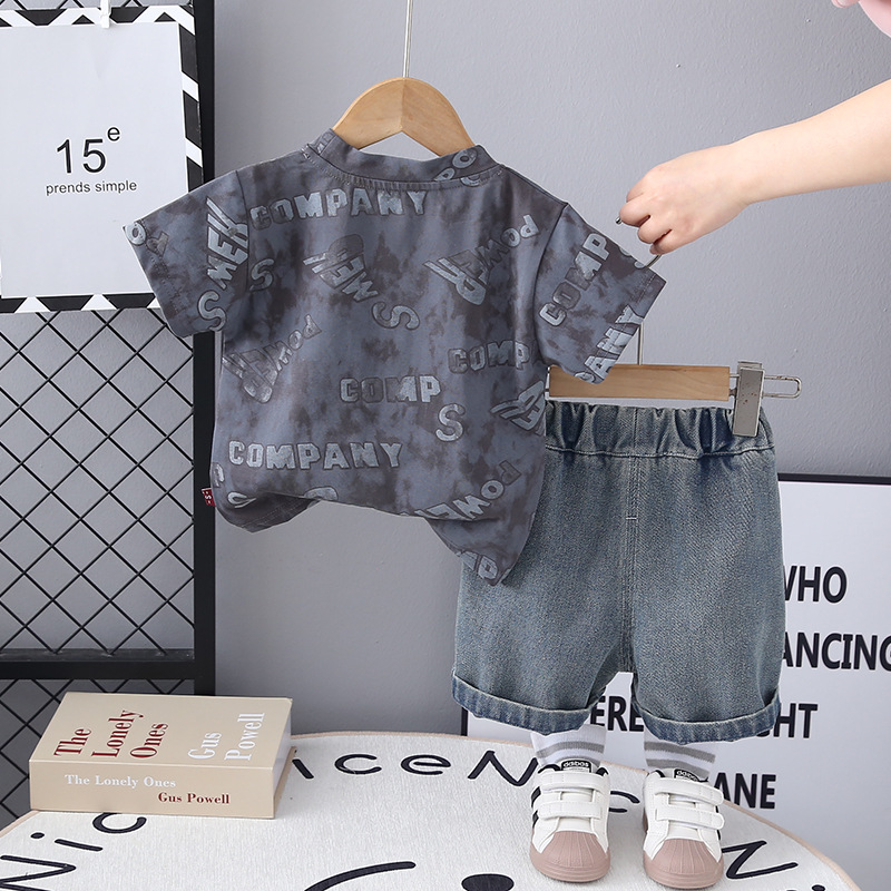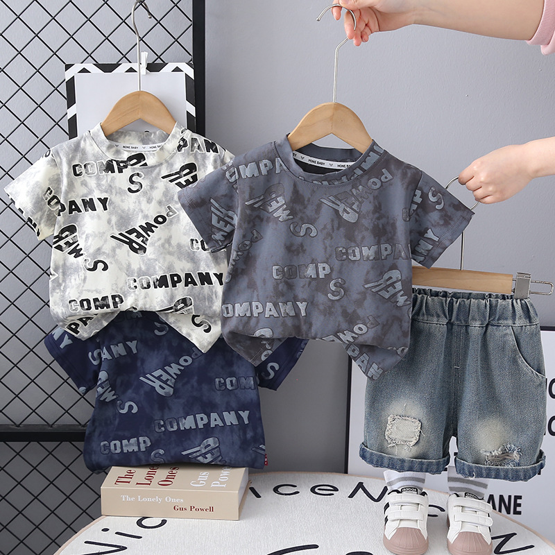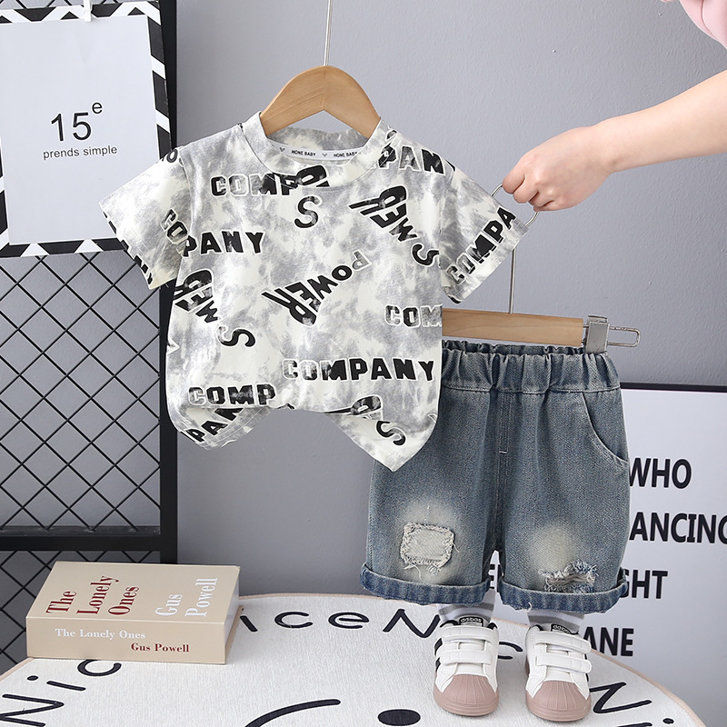 【儿童洋气套装!字母印花点缀】童装儿童短袖套装夏季新款宝宝字母印花洋气男童夏装套装。ry