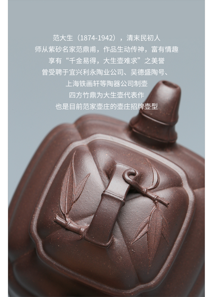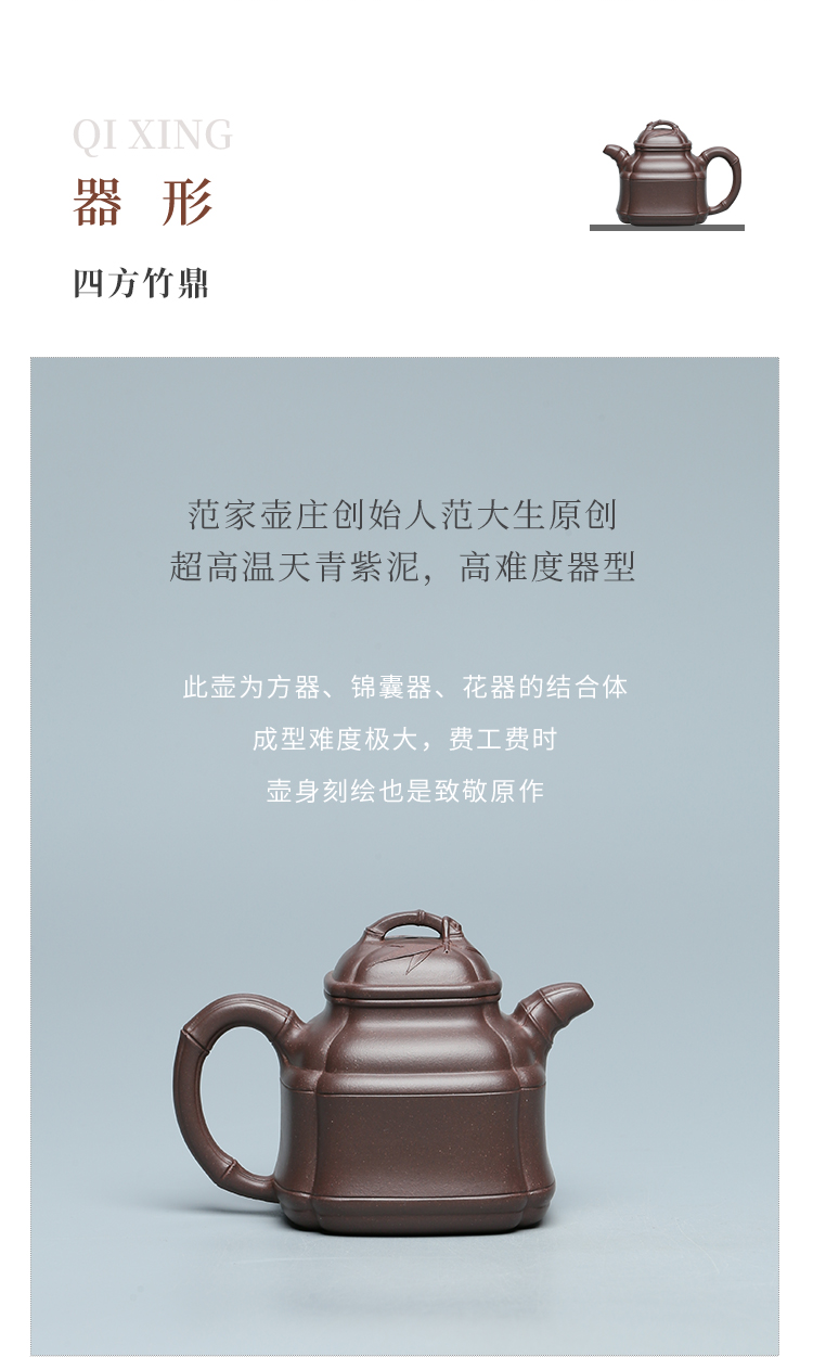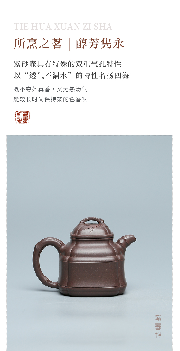 百年紫砂品牌铁画轩出品 超高温紫泥 四方竹鼎紫砂壶230ml