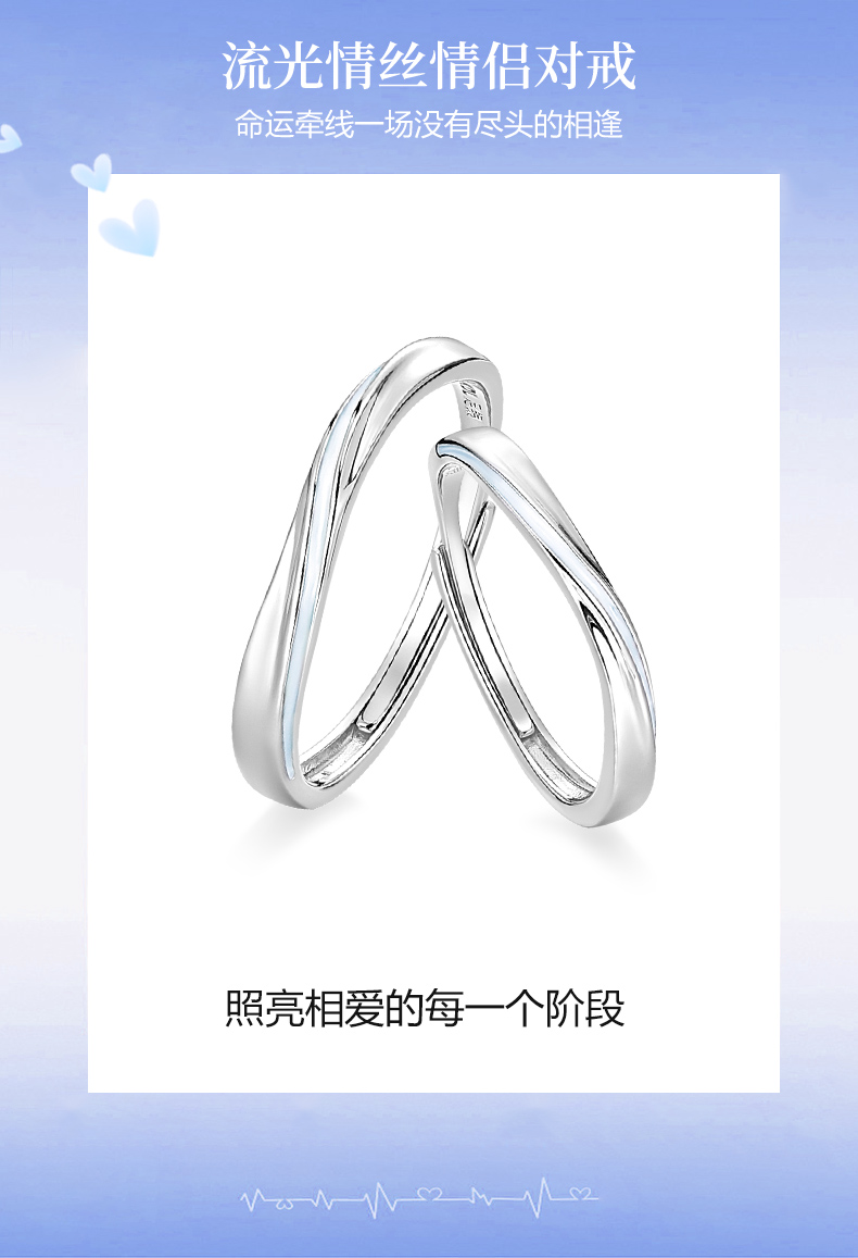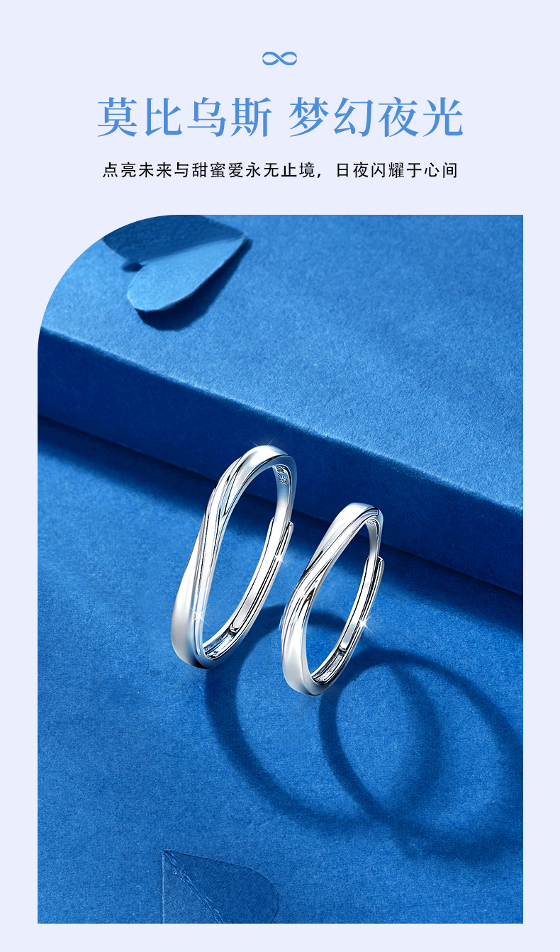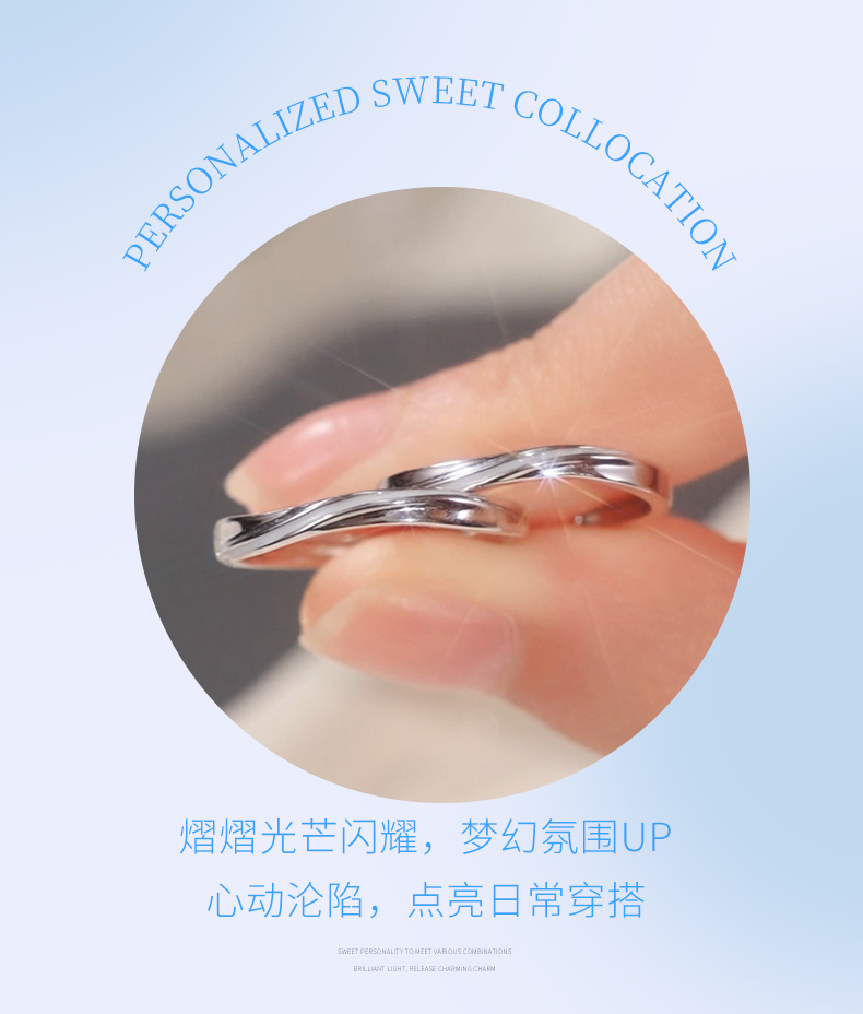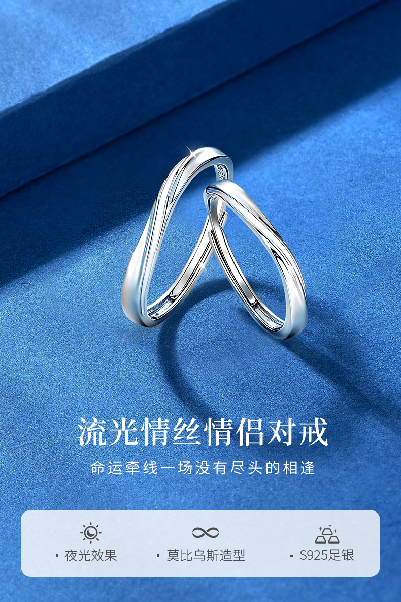 卡蒂罗KADER 流光情丝情侣对戒 925银恋爱频率莫比乌斯环爱无止境轻奢发光小众高级感设计开口可调节一对 戒指 男女同款情侣款 银色 礼盒款