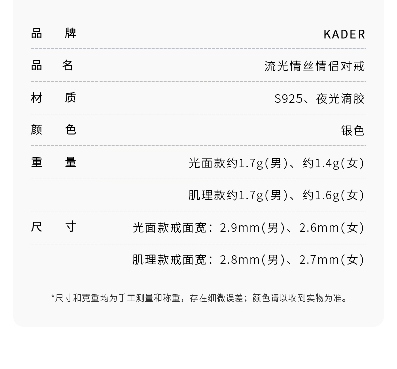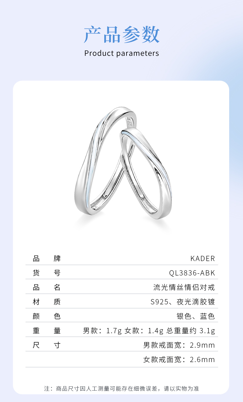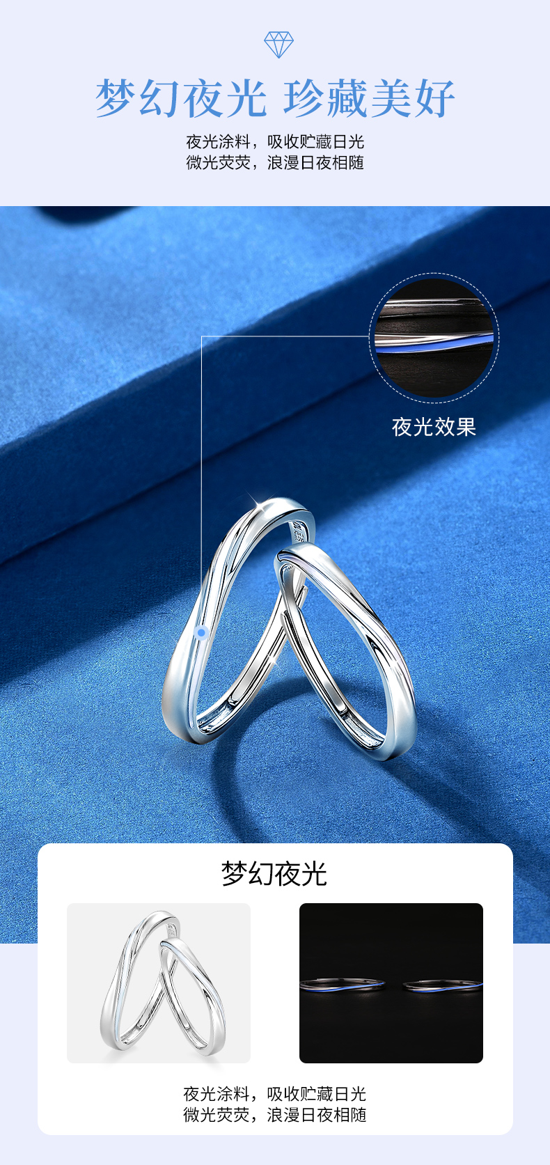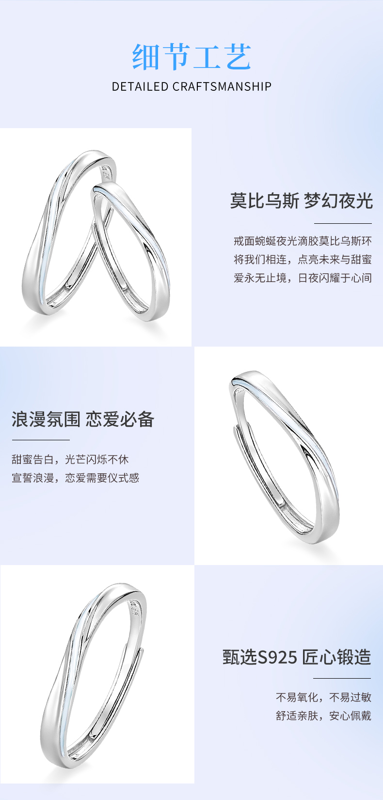 卡蒂罗KADER 流光情丝情侣对戒 925银恋爱频率莫比乌斯环爱无止境轻奢发光小众高级感设计开口可调节一对 戒指 男女同款情侣款 银色 礼盒款