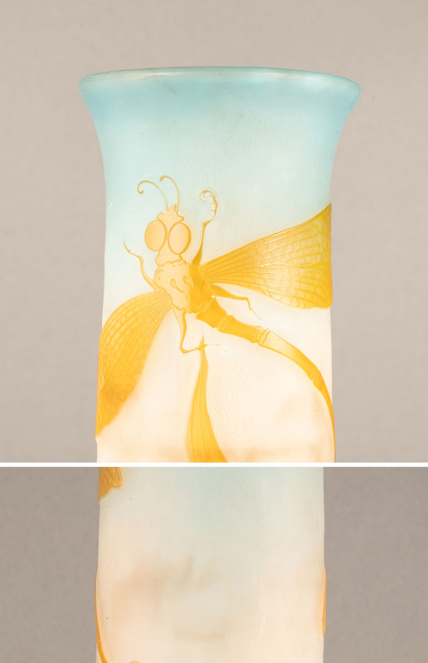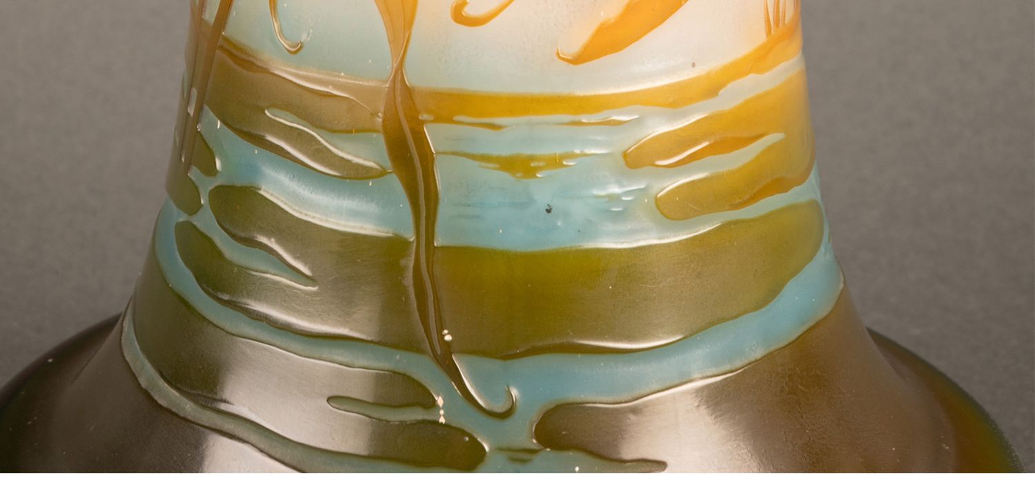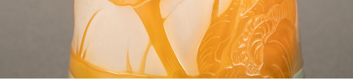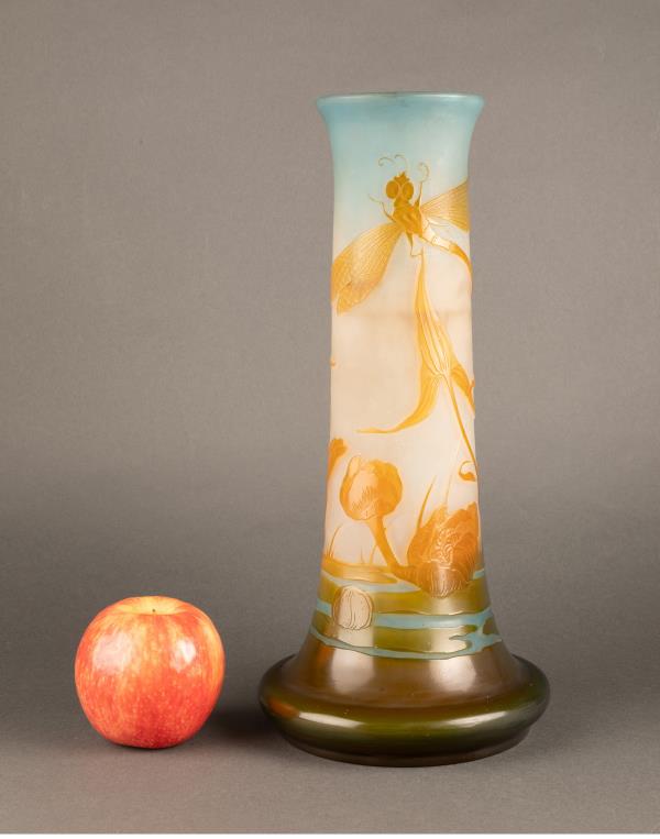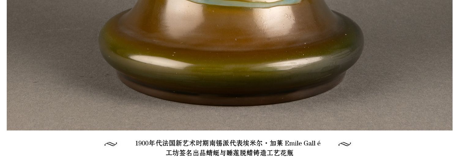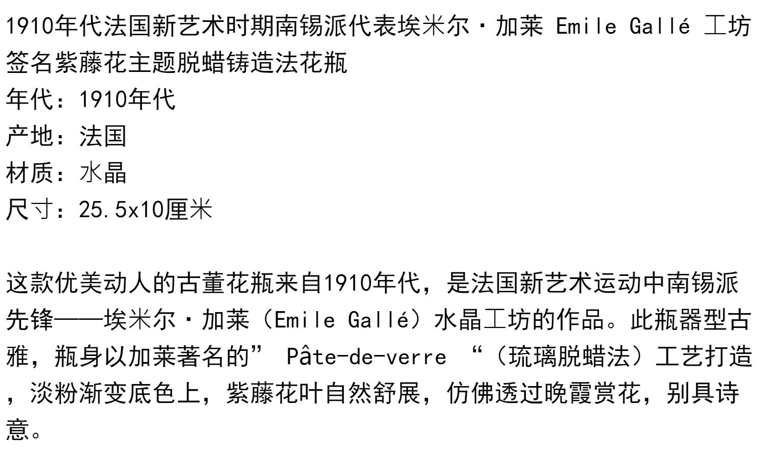 独角鹿西洋古董法国南锡派埃?尔·加莱紫藤花脱蜡铸造水晶花瓶