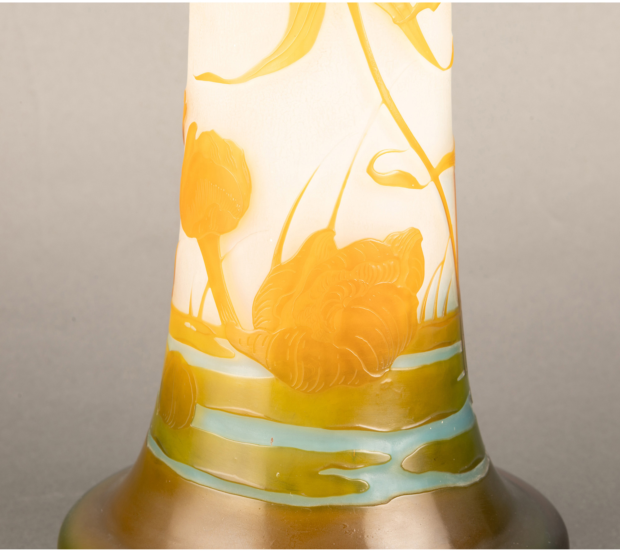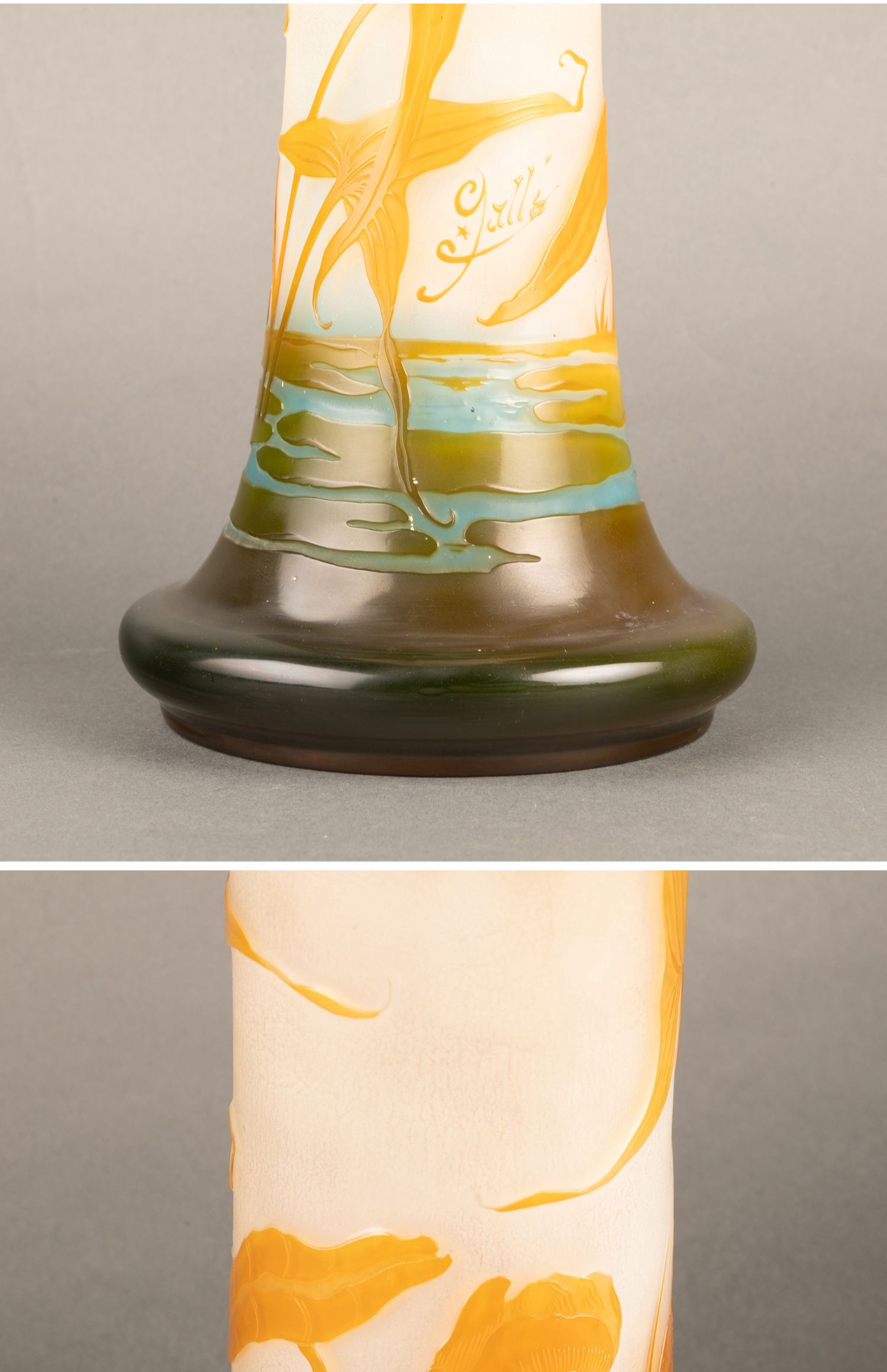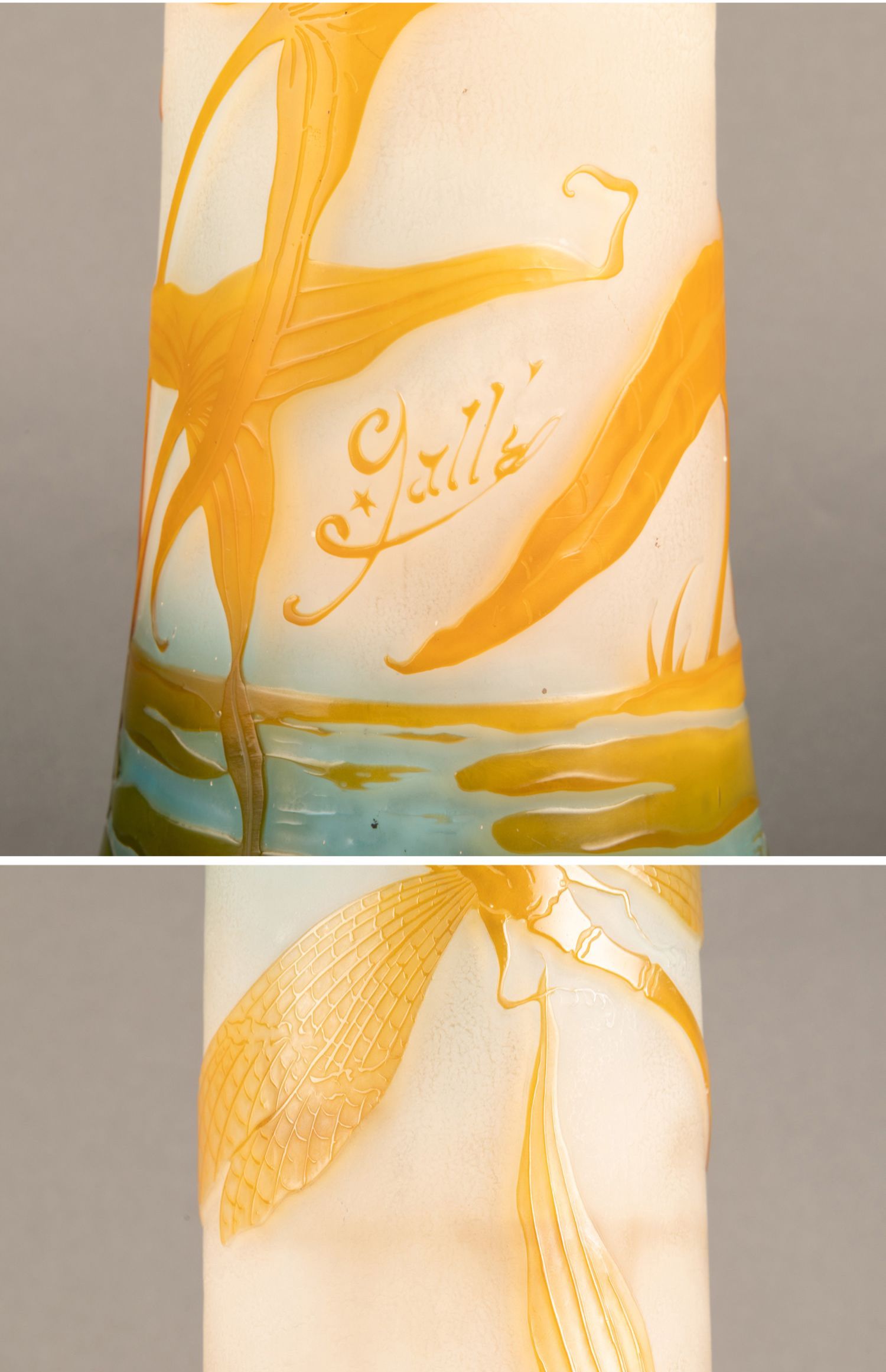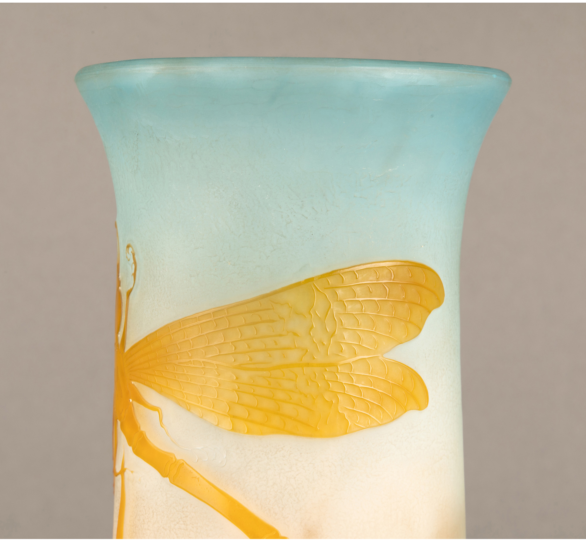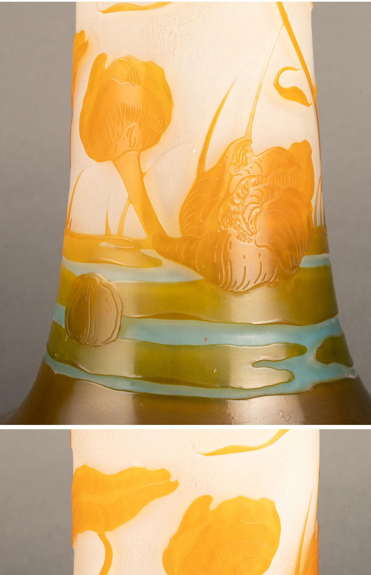 独角鹿西洋古董法国南锡派埃?尔·加莱紫藤花脱蜡铸造水晶花瓶
