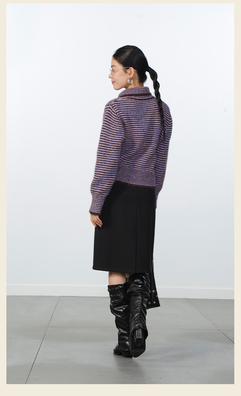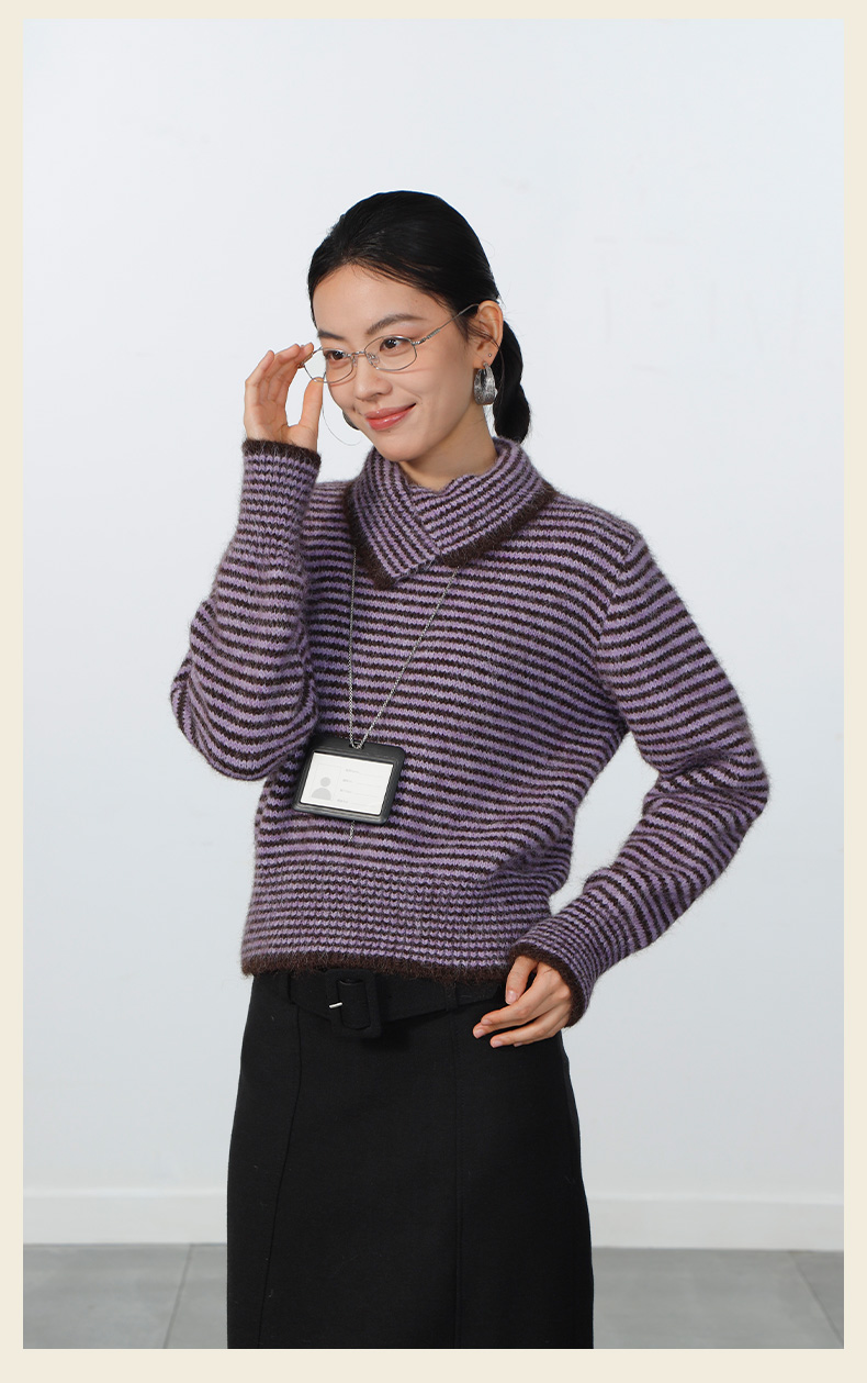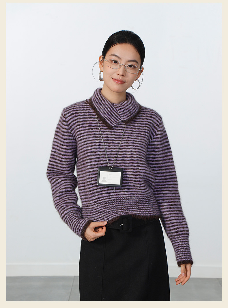 极简翻领条纹针织衫-纪念日百货门店同款168943871