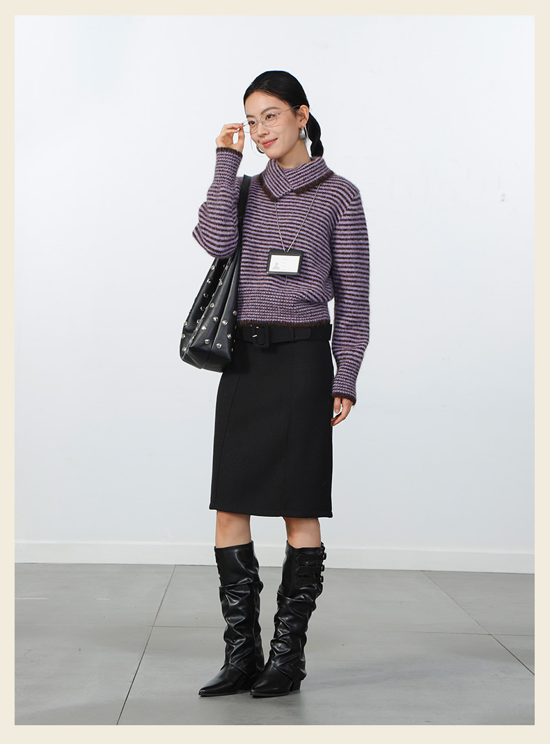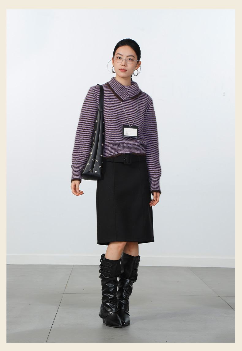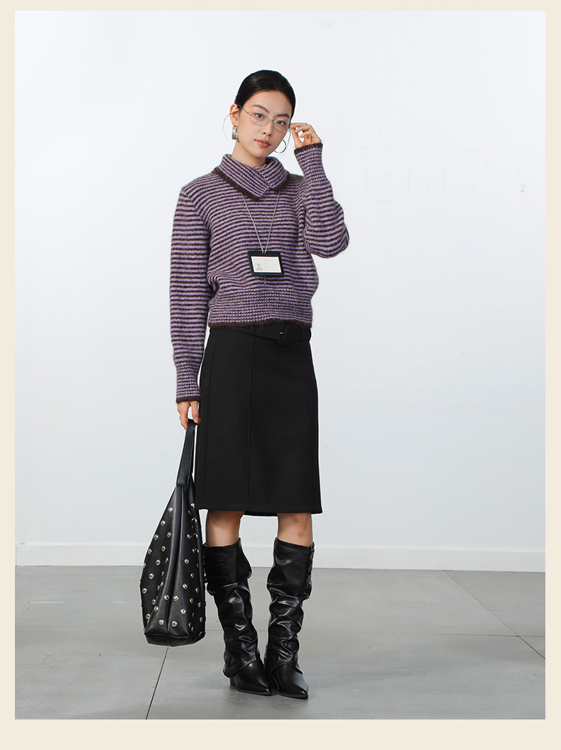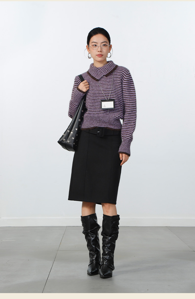 极简翻领条纹针织衫-纪念日百货门店同款168943871