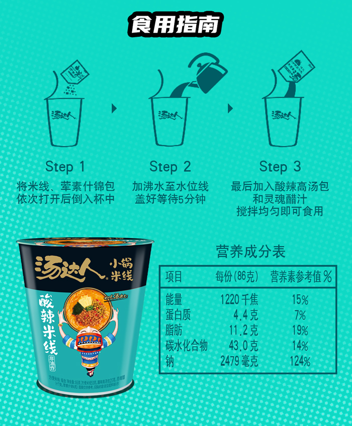 【统一】方便面 杯面 统一汤达人酸辣米线 86g/杯 12杯/箱 1箱(6个月)
