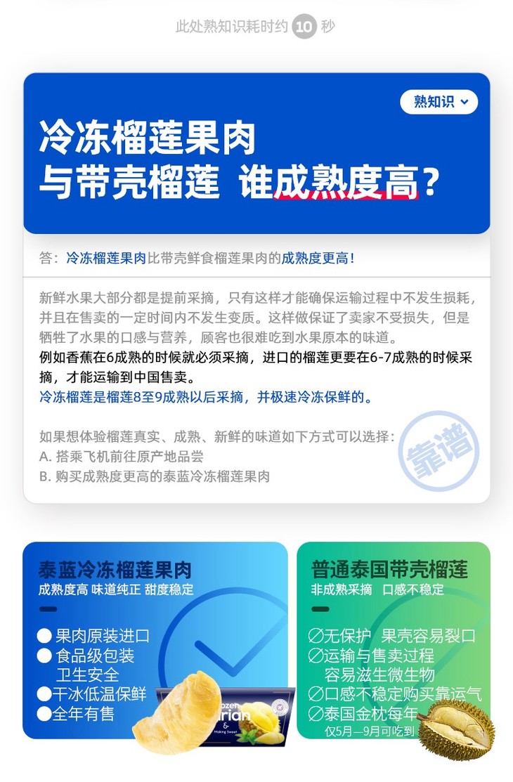 【泰蓝金枕头冷冻榴莲肉】450g/盒*1盒/2盒/3盒,原装品质泰国进口