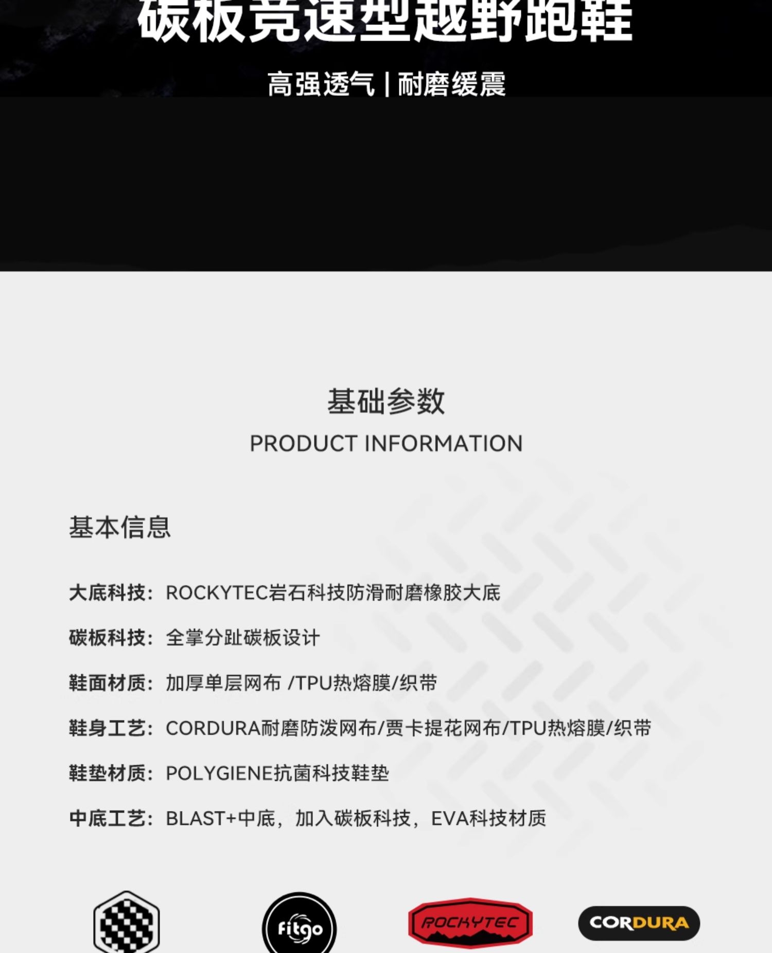 【CT-隼】伯希和碳板越野跑鞋男CORDURA防泼水户外登山徒步鞋女