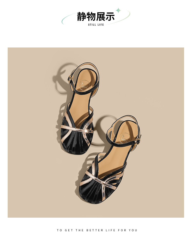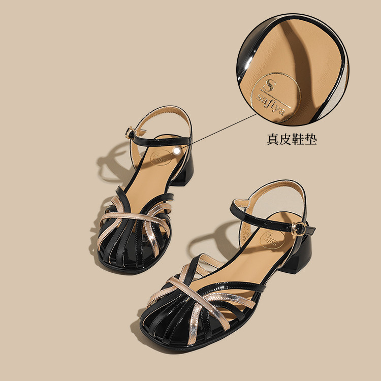品质好货 | Safiya/索菲娅2024夏中后空包头高级感镂空粗跟凉鞋SF42114703