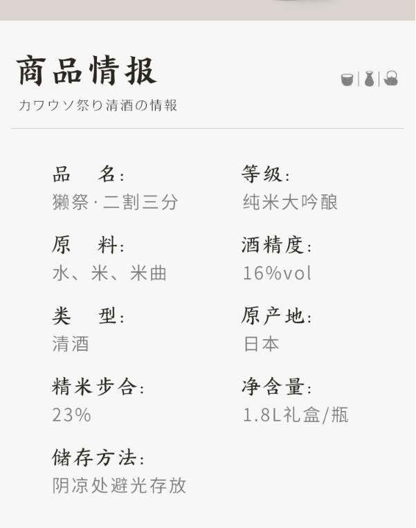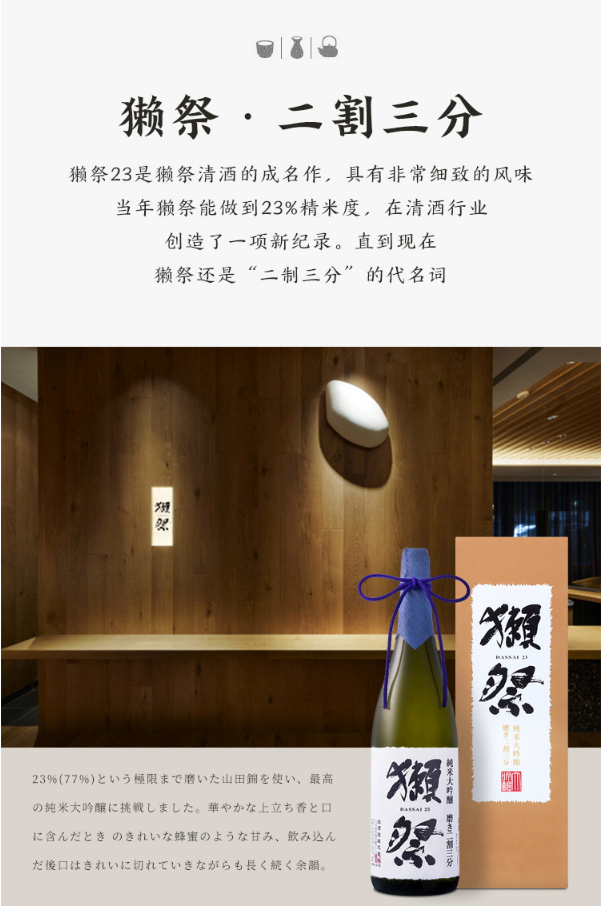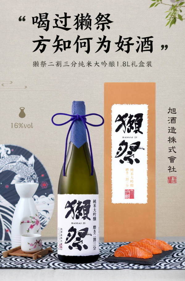 日本獭祭23 二割三分 纯米大吟酿清酒1.8L*1瓶